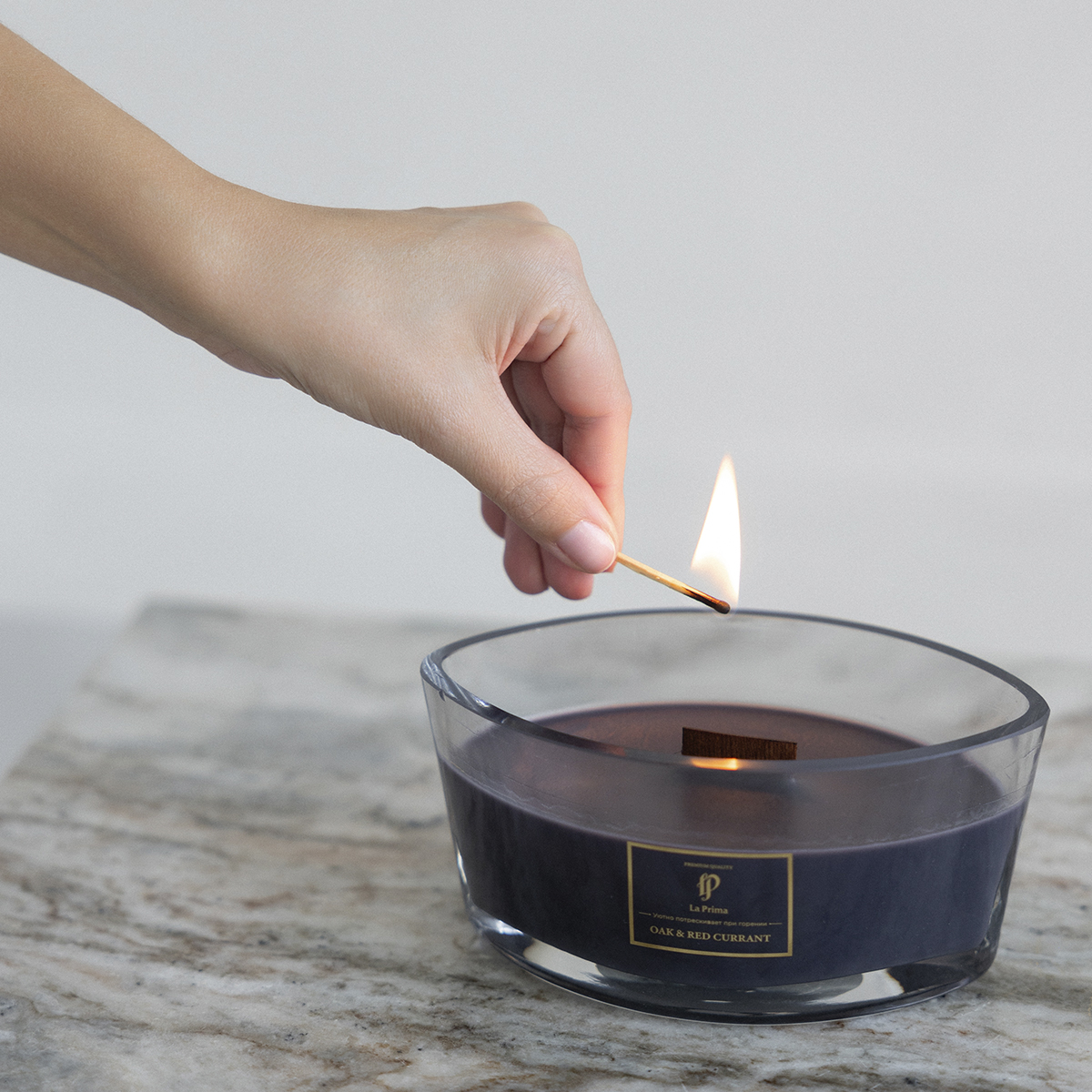 • Древесный фитиль создает длинное эффектное пламя