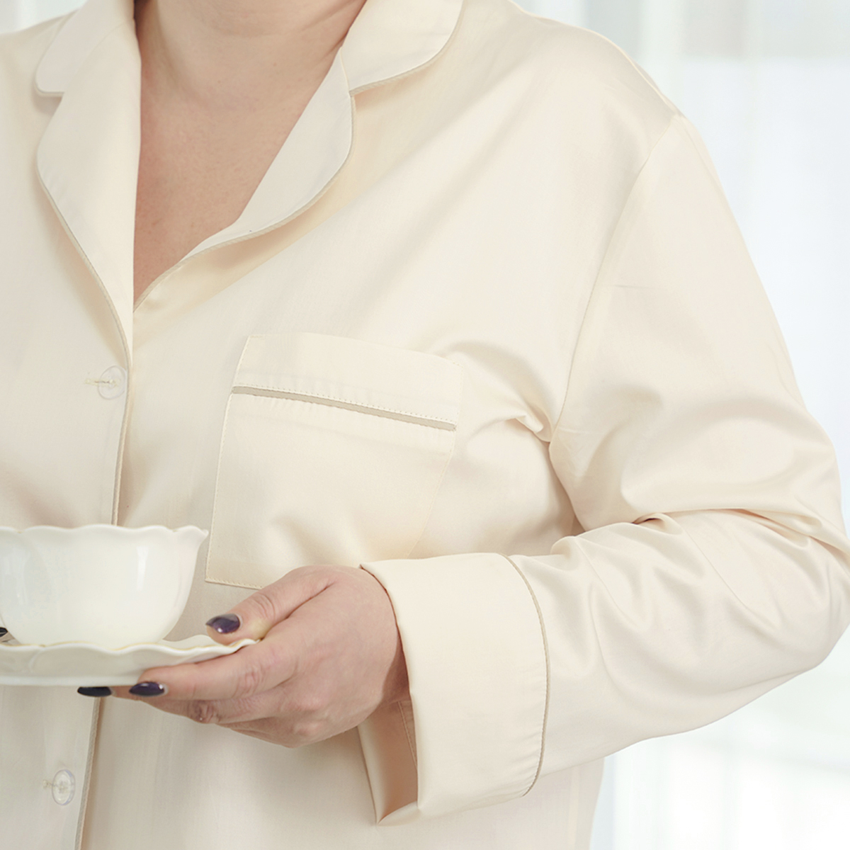 Пижама выполнена из 100% длинноволокнистого египетского хлопка высшего сорта, очень мягкого и приятного на ощупь - доставит удовольствие от каждого прикосновения