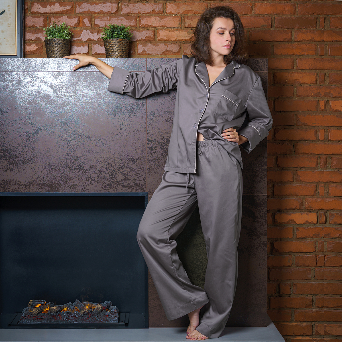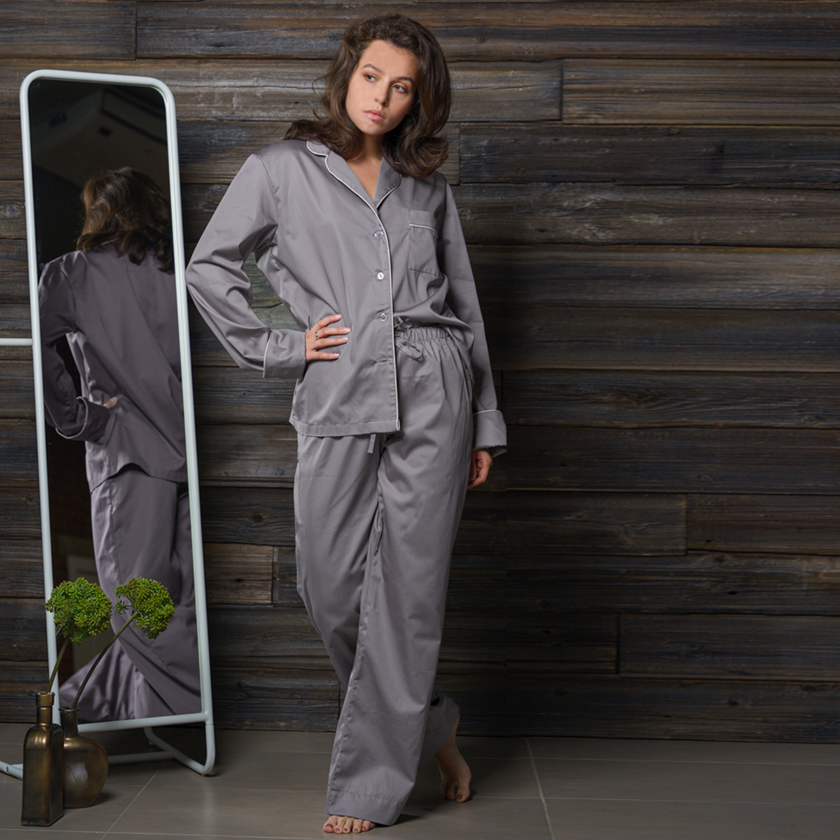 Пижама выполнена из 100% длинноволокнистого египетского хлопка высшего сорта, очень мягкого и приятного на ощупь - доставит удовольствие от каждого прикосновения