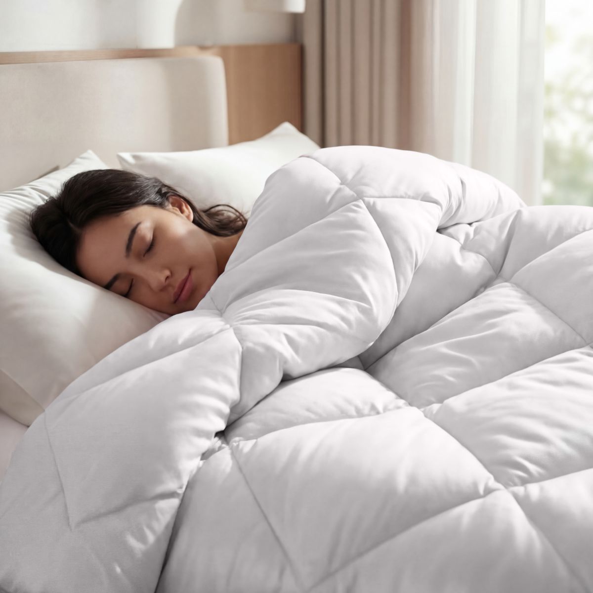 Благодаря объемному наполнителю одеяло обволакивает приятной тяжестью, создавая эффект антистресс-объятий, тем самым помогая полноценно расслабиться и быстрее заснуть.