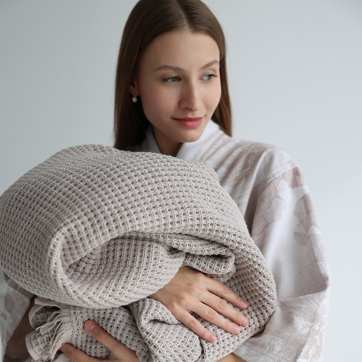 Высококачественная натуральная пряжа делает плед мягким и комфортным на ощупь. Оригинальная объемная фактура добавляет особую изысканность пледу.