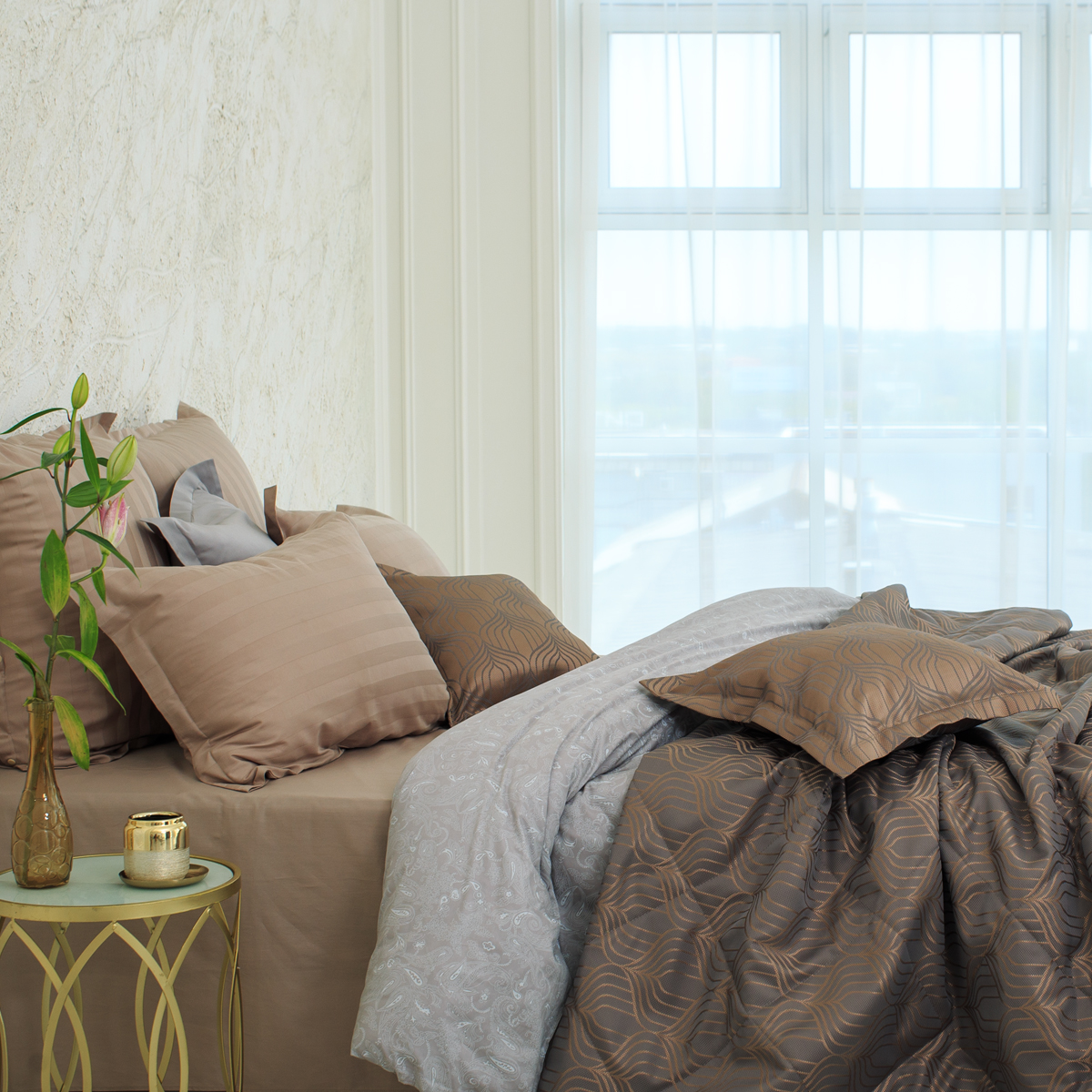 К покрывалу можно выбрать комплект штор из коллекции La Prima для создания неповторимой изюминки в вашем доме.
