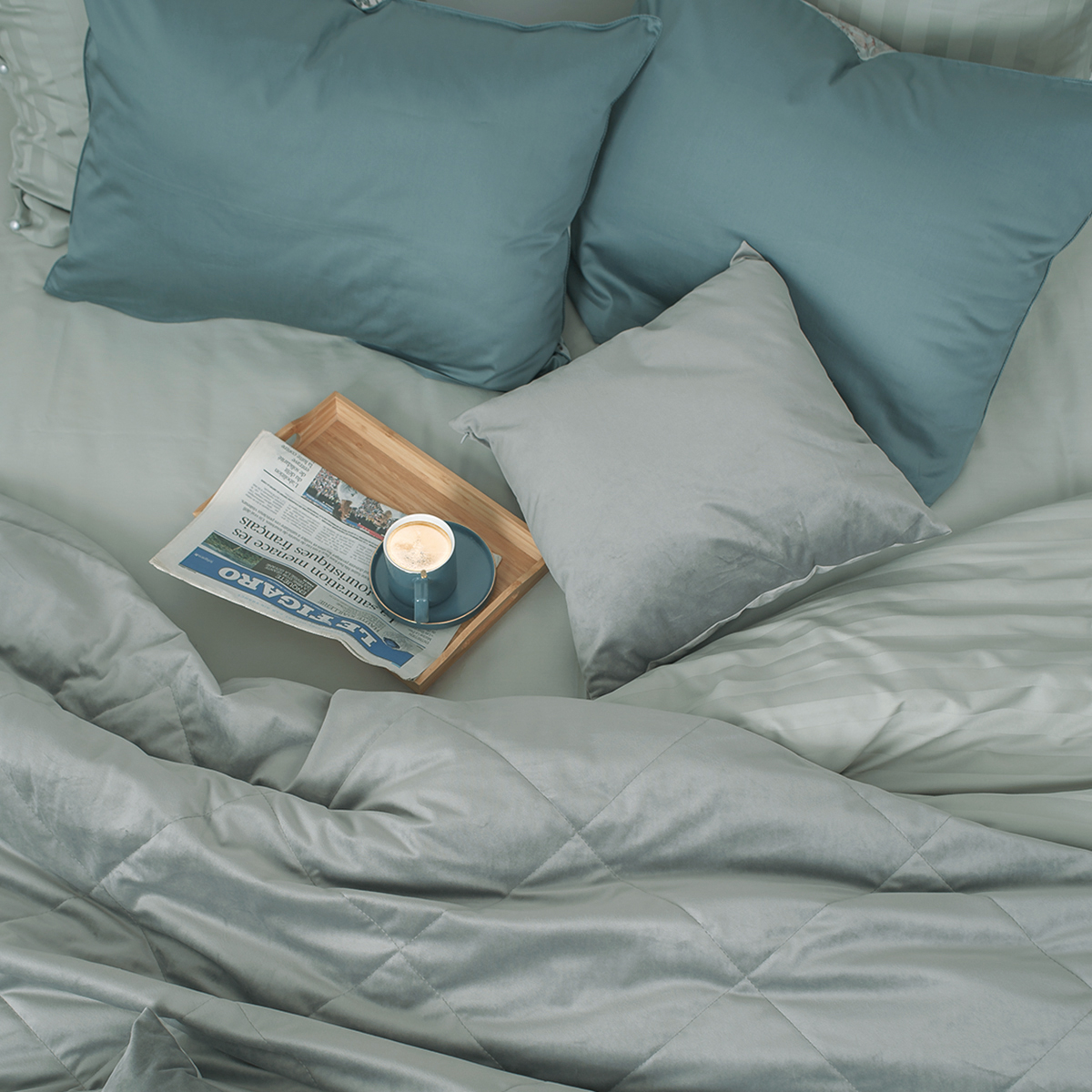 В комплект входит: стеганное покрывало на подкладе размер 240*260 см. Наволочек в комплекте нет.