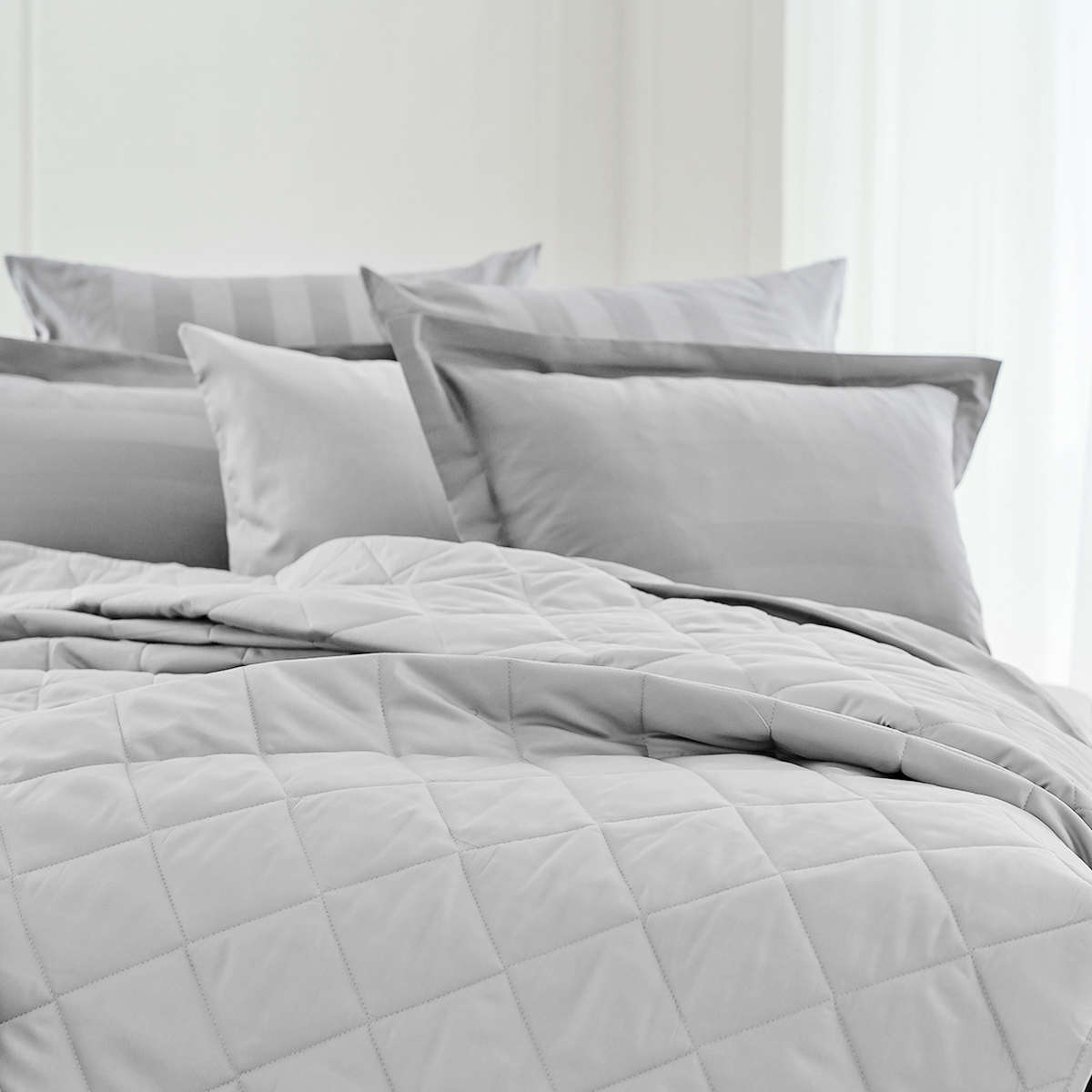 Удобное решение для оформления интерьера в едином стиле - покрывала выполнены в тех же расцветках и из той же ткани, что и однотонное постельное белье La Prima.