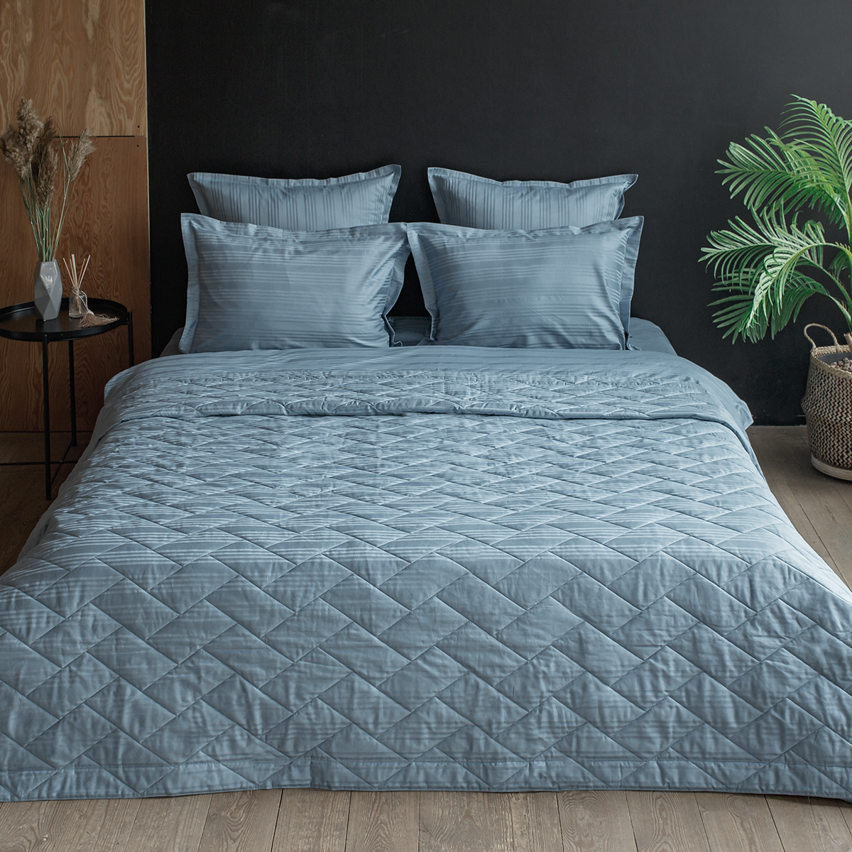 Хлопковые покрывала представлены двумя фактурами ткани из 100% хлопка: STRIPE САТИН – жаккардовая ткань с полосами и PAISLEY – сатиновая ткань с печатным орнаментальным рисунком.