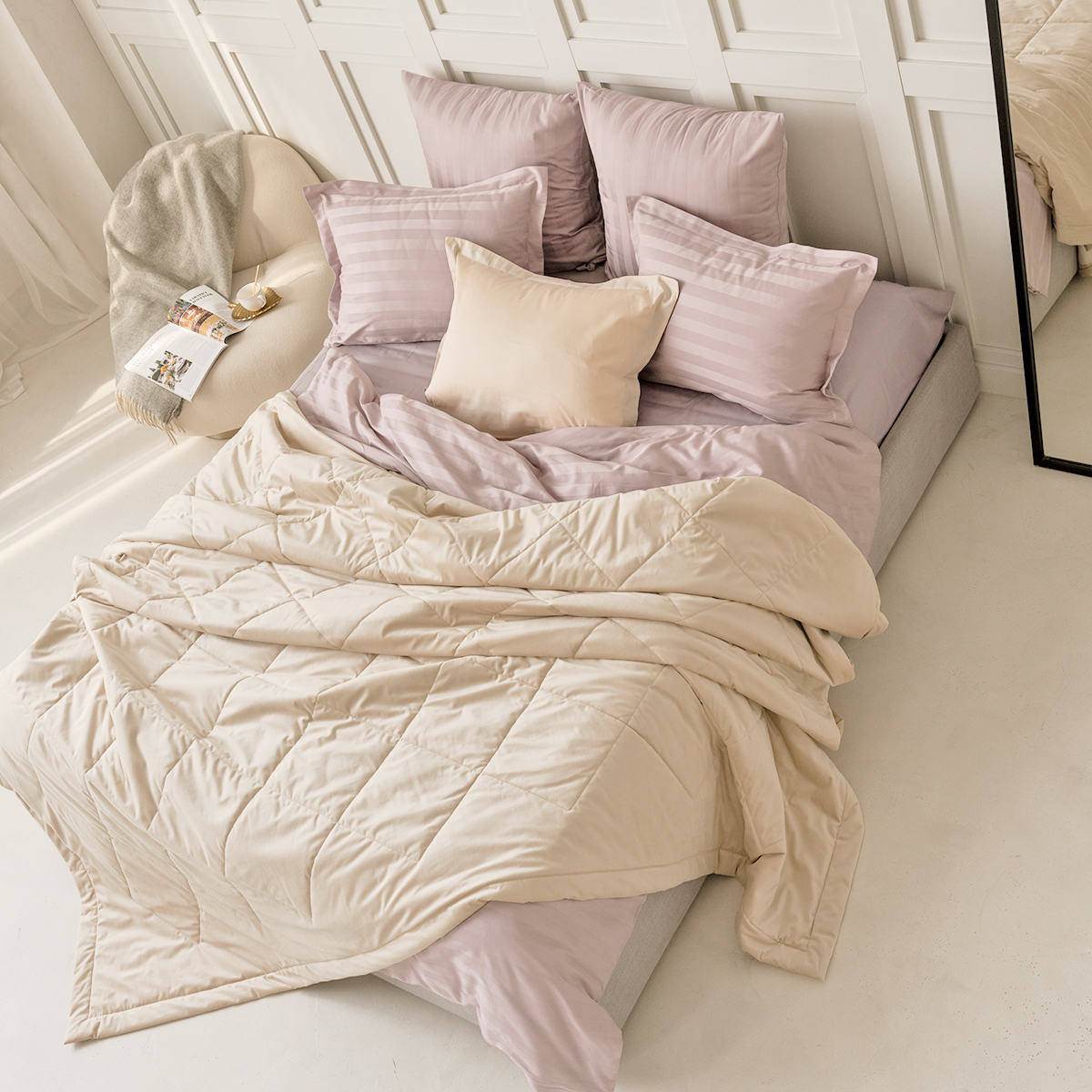 В комплект входит: стеганное покрывало на подкладе размер 240*260 см. Наволочек в комплекте нет.