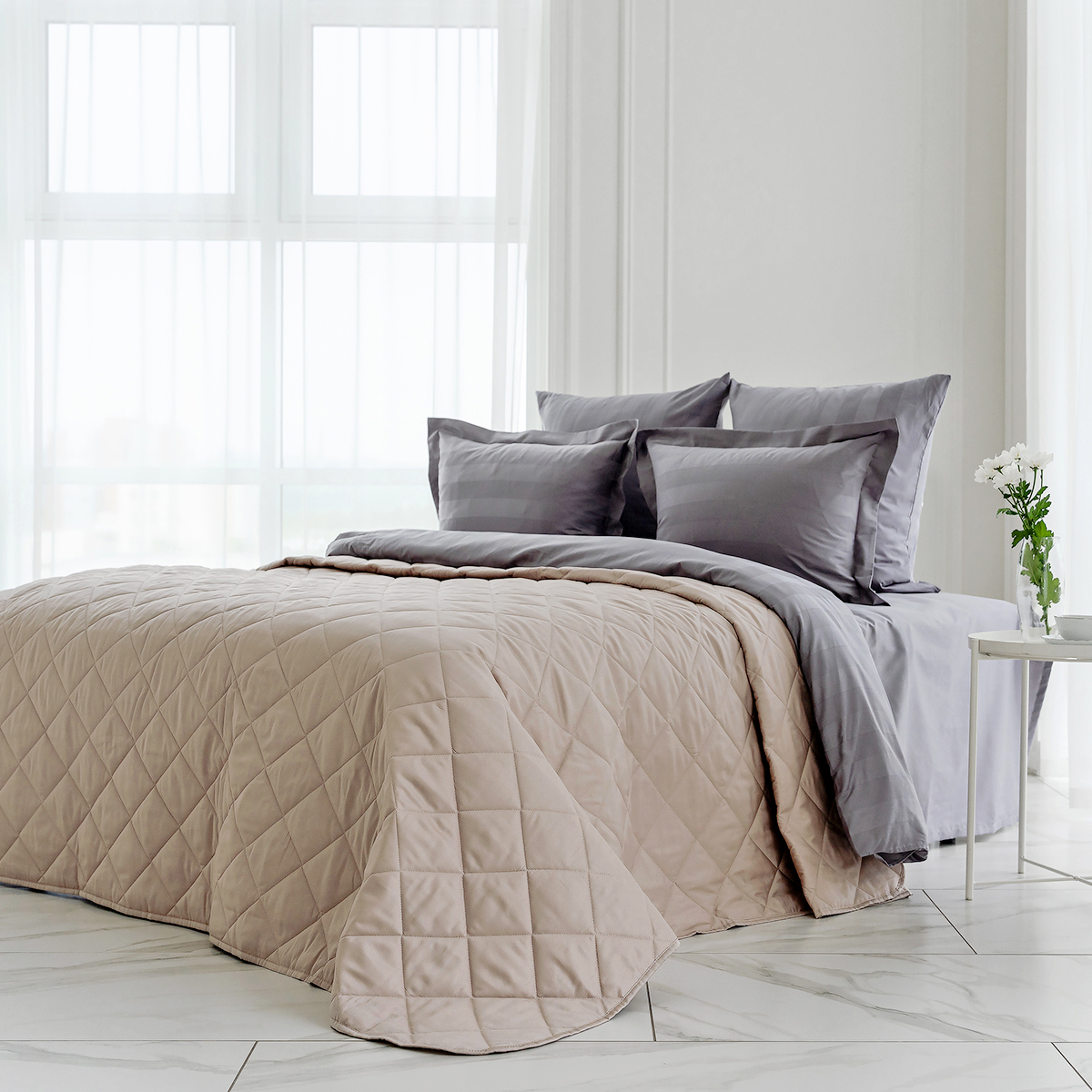 ОСОБЕННОСТЬ модели: хлопковое покрывало на кровать с закругленным уголком, практичной окантовкой по периметру изделия и стильной стежкой в виде ромбов. Верхняя и нижняя часть покрывала выполнены из высококачественного египетского хлопка – безопасного, натурального и комфортного материала.