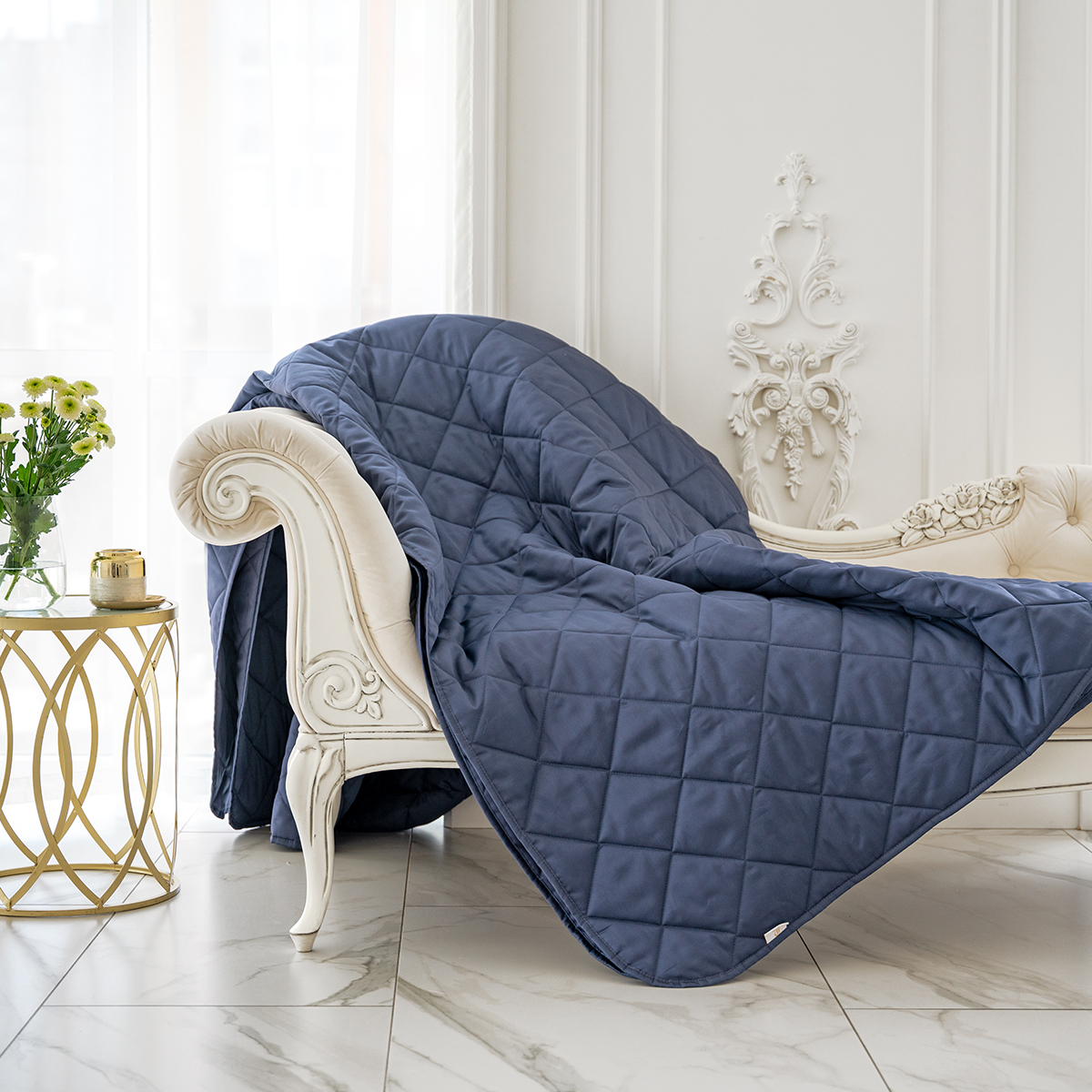 Стеганое покрывало многофункционально: его можно использовать как покрывало для декорирования кровати, так и как легкое одеяло. Покрывало простегано тонким слоем гипоаллергенного наполнителя.