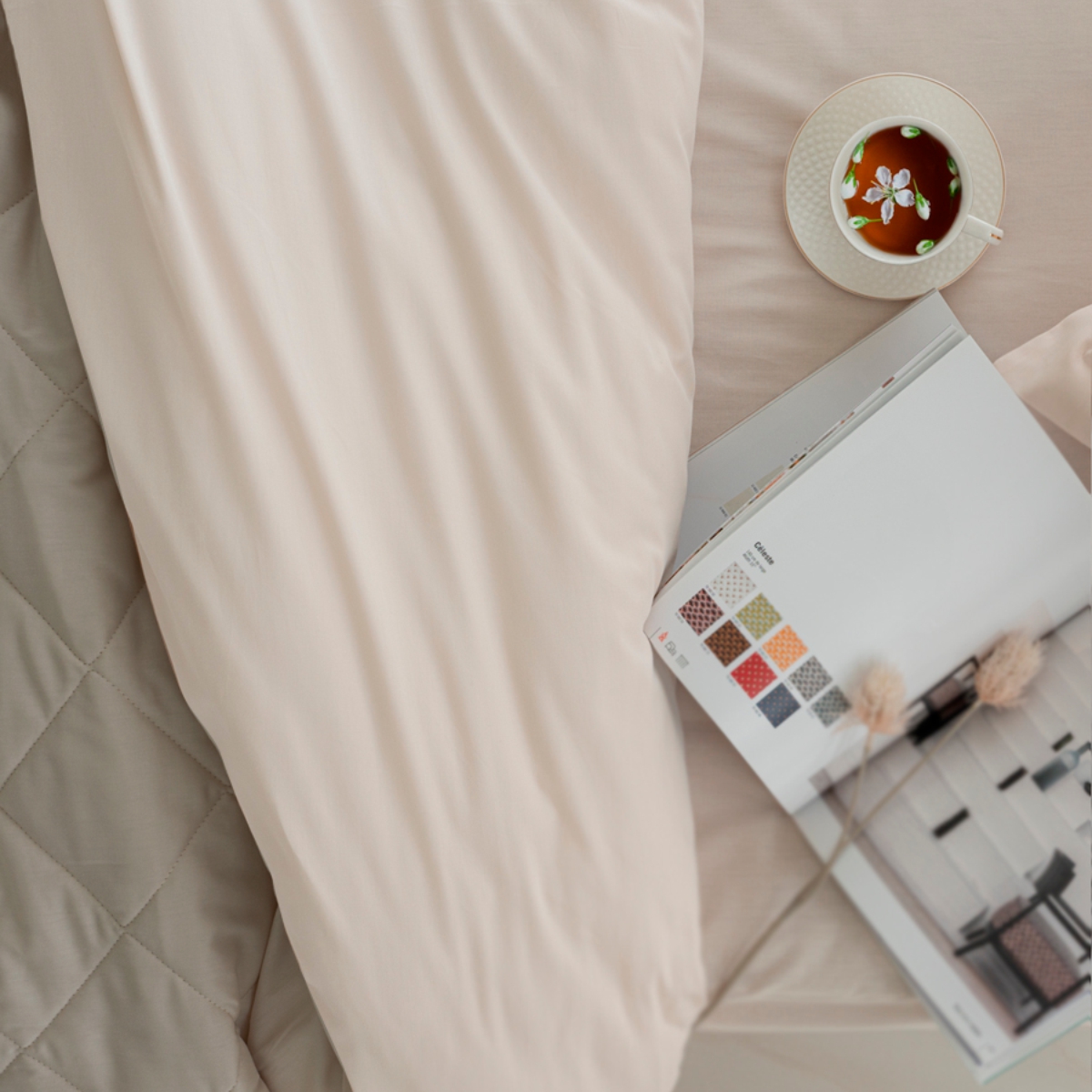 Удобное решение для оформления интерьера в едином стиле - покрывала выполнены в тех же расцветках и из той же ткани, что и однотонное постельное белье La Prima.