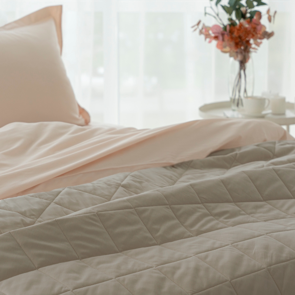 За покрывалом очень легко ухаживать, его можно стирать в стиральной машине. Покрывало стеганное практично: на хлопковой ткани не остается зацепок.