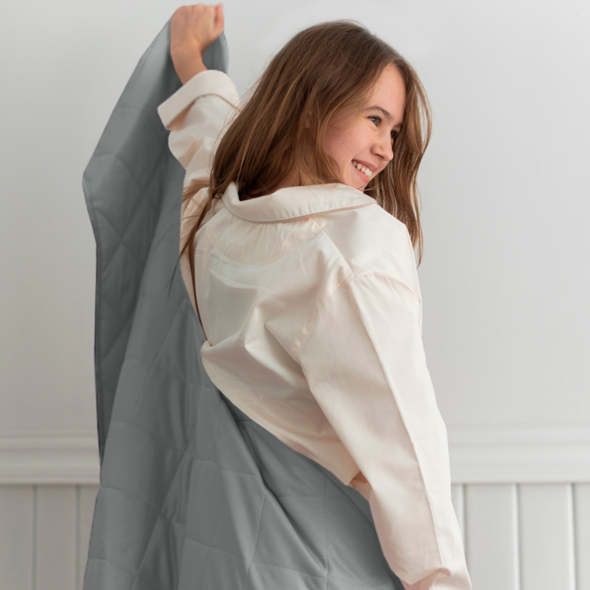 Нежное двухстороннее стеганое покрывало из 100% хлопка (сатин, плотность 205ТС) с гипоаллергенным 3D-наполнителем (100 г/м²) создано для тех, кто ценит: