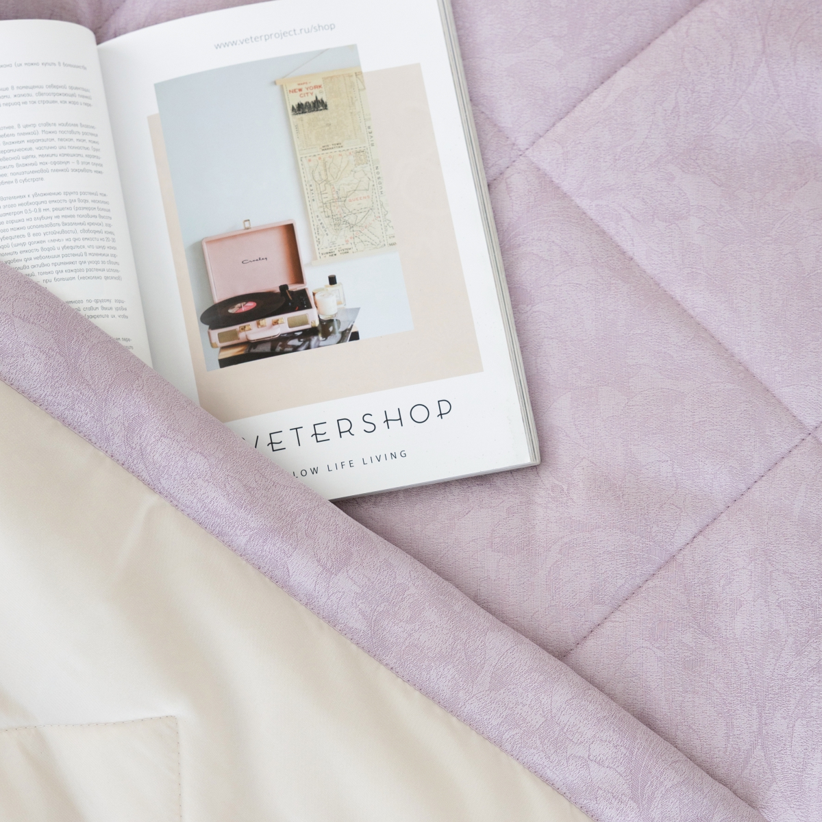 Подклад: микрофибра велюр, за счет своей фактуры он предотвращает скольжение покрывала на кровати.
