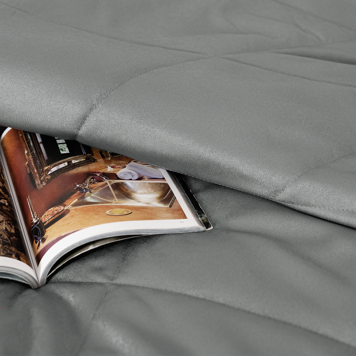 Подклад: микрофибра велюр, за счет своей фактуры он предотвращает скольжение покрывала на кровати