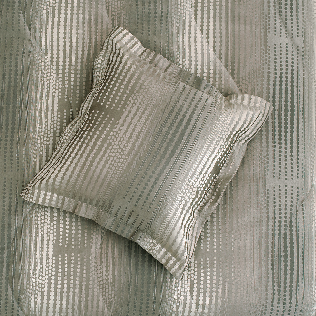 В комплект входит: стеганное покрывало на подкладе размер 240*260 см и 2 декоративные наволочки 45х45 см на молнии. Наволочки с четырех сторон декорированы ушками шириной 3 см.