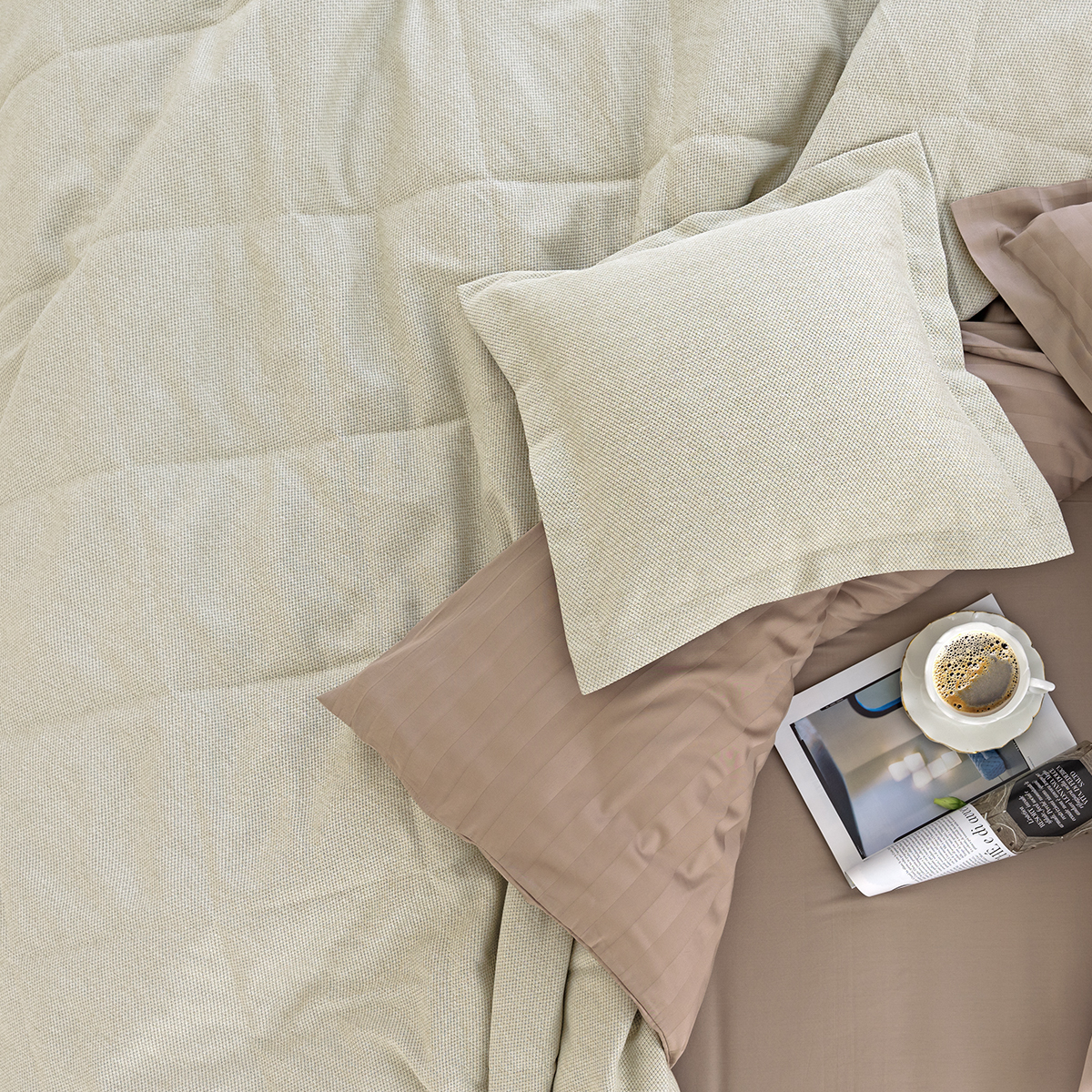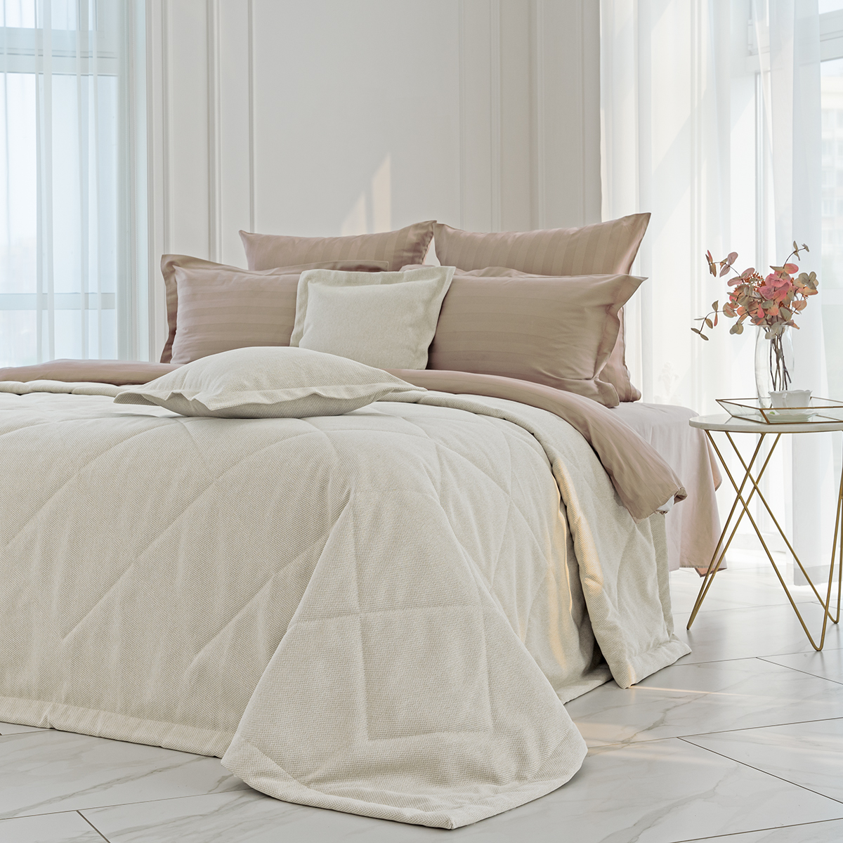 Лаконичная, стильная базовая коллекция однотонных покрывал и штор с мелким геометричным жаккардовым узором воплощает всю суть современного дизайна и позволяет создать поистине гармоничное и комфортное пространство для жизни.