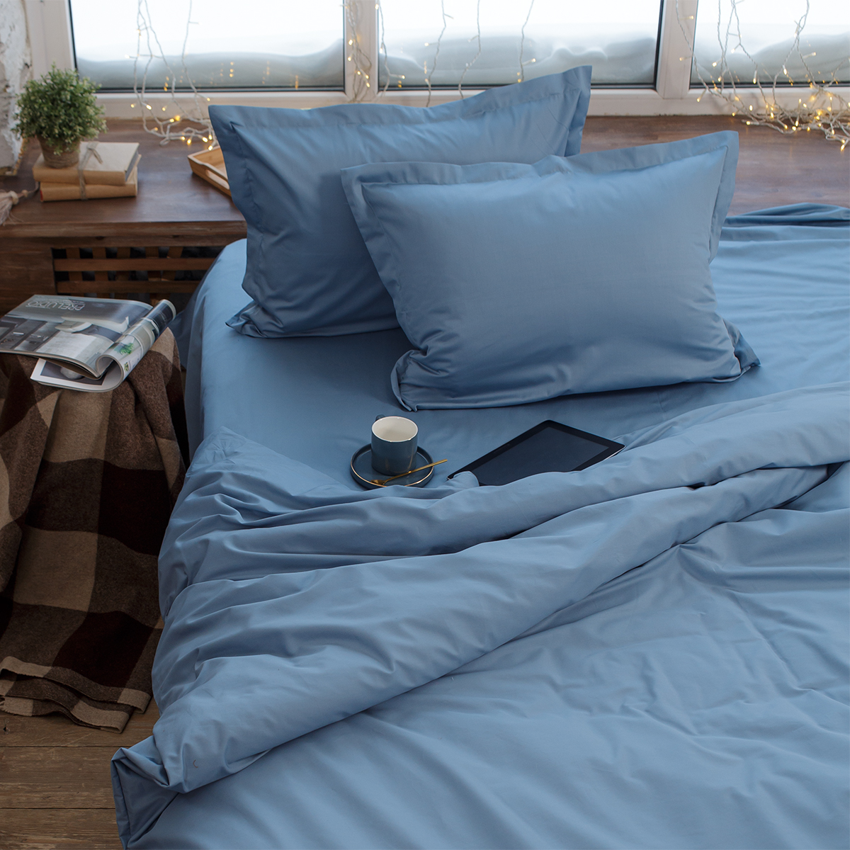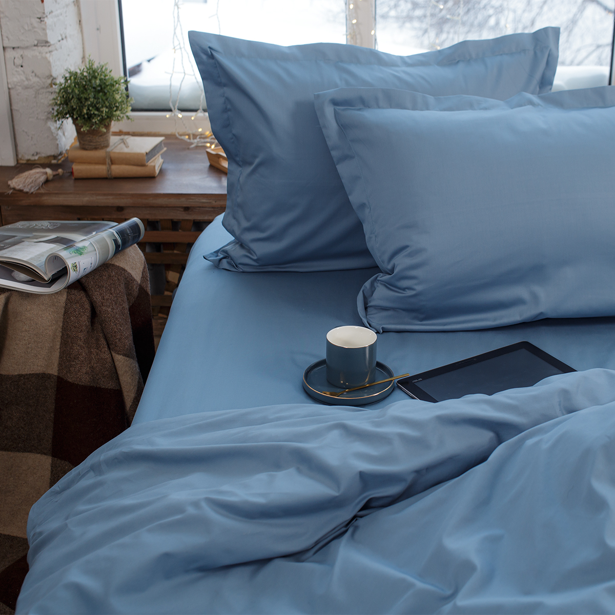 Текстиль из натуральной хлопковой ткани пропускает воздух, поддерживает комфортную температуру тела, когда вы спите. Гипоаллергенно.