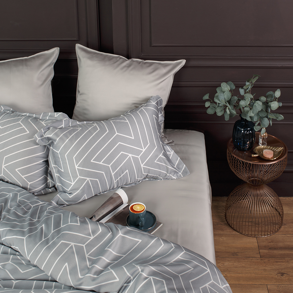 Комплект постельного белья произведен из 100% эвкалиптового волокна Tencel, которое ученые называют инновационным материалом нового поколения.