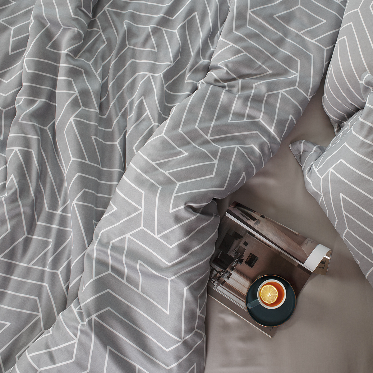 Оригинальный и стильный геометричный принт на универсальном и спокойном сером фоне. Строгая геометрия линий и форм выстраивается в завораживающий лабиринт, притягивает взгляд и наполняет пространство неповторимым стилем.