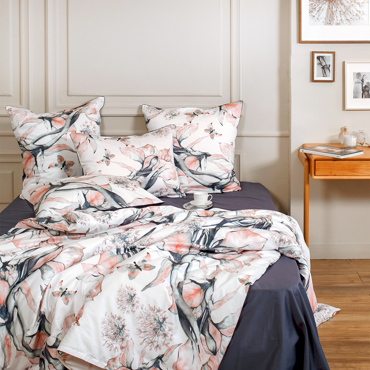 В ткани мако-сатин, из которой произведена коллекция, используется более тонкая 60-я нить. Плотность ткани 300 ТС. За счет специальной скрутки нити, ткань получается очень мягкая и приятная на ощупь.
