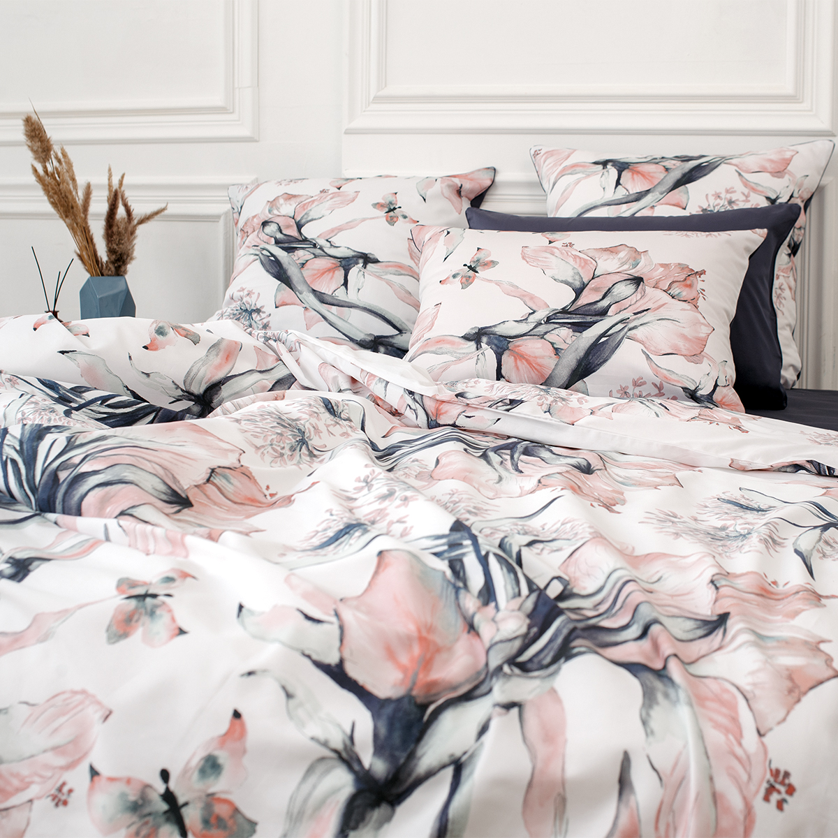 - Наволочки двухсторонние: лицевая сторона – цветочный принт, оборотная – однотонная. Декоративный кант по трем сторонам наволочки. Широкий запах на наволочках - легко менять подушки.