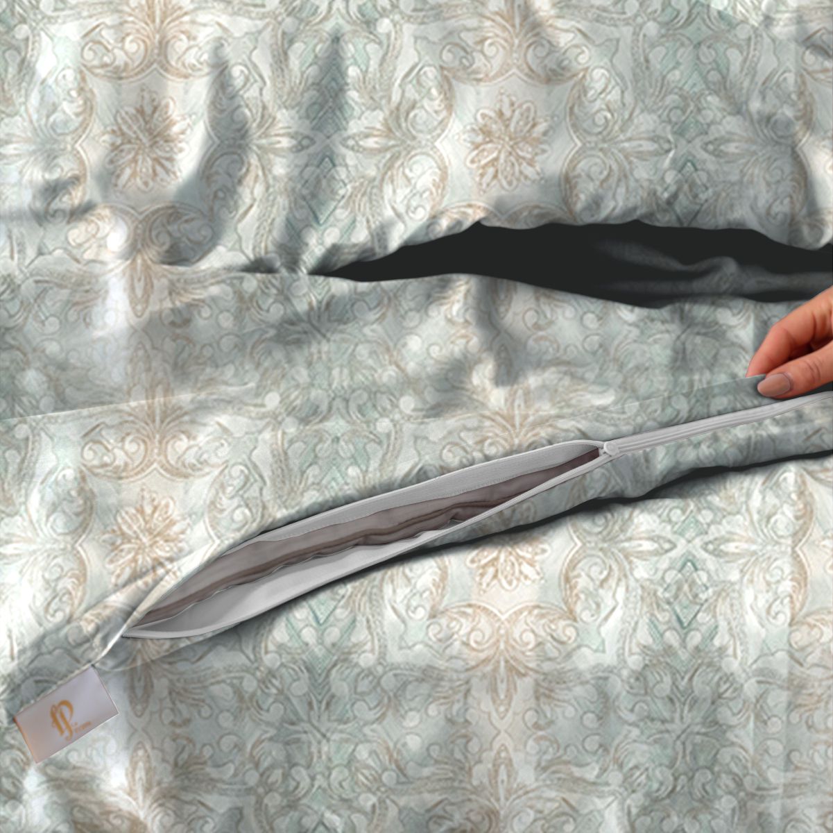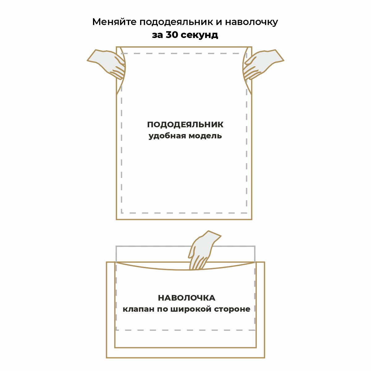 Молния-«невидимка» во всю ширину по нижнему краю и клапаны для рук в верхней части пододеяльника, а также широкий запах наволочки позволяют менять белье быстро как никогда.