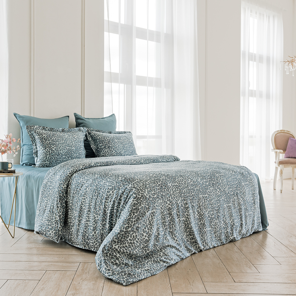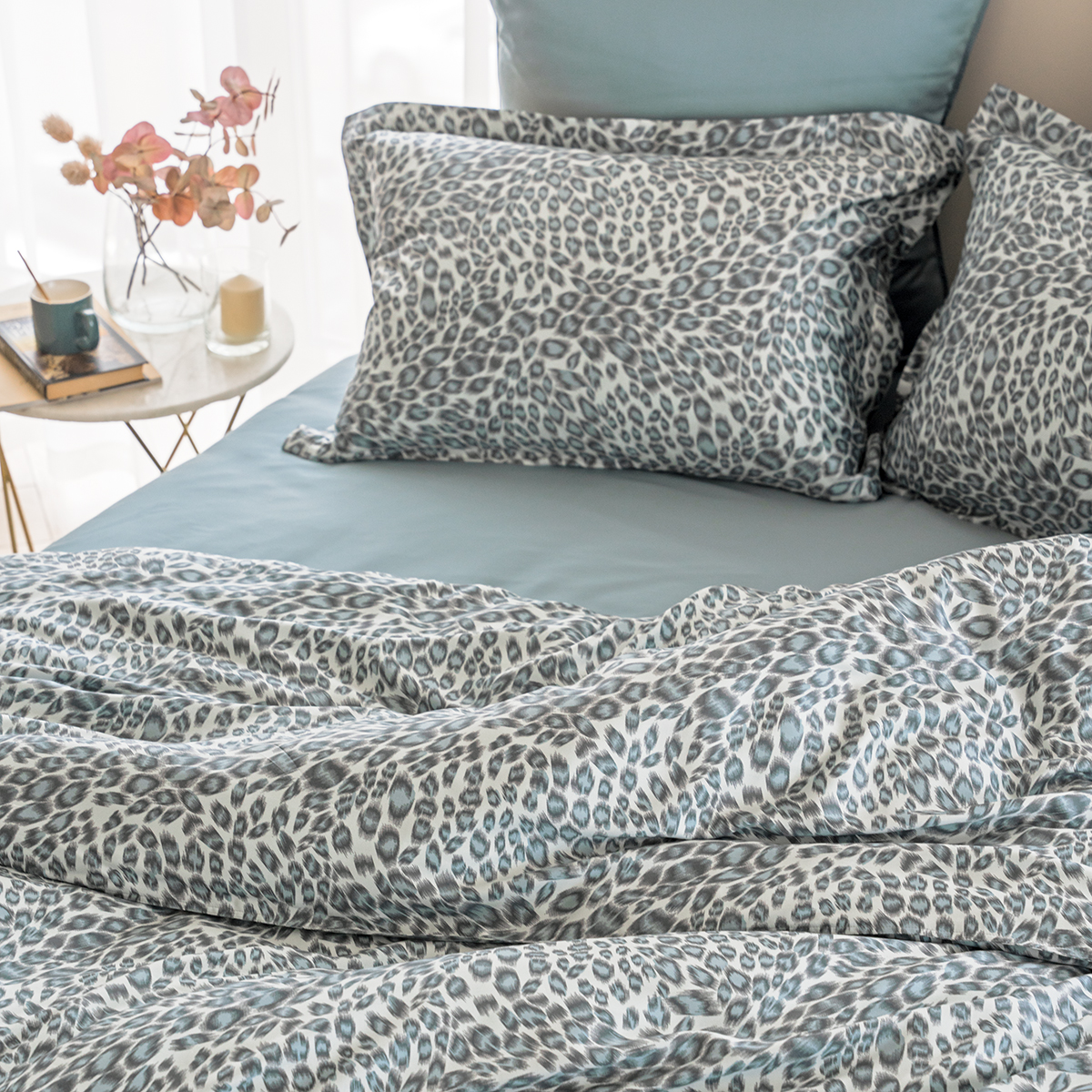 Смелая экзотика. Дерзкий и невероятно стильный леопардовый принт выполненные спокойных серо-голубых оттенках подчеркивает чувственность, благородство и респектабельность интерьера