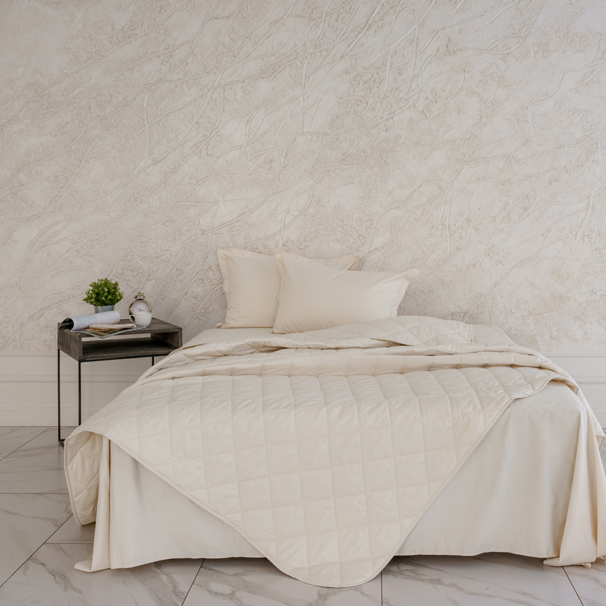 - Стеганое легкое одеяло (плотность 100 г/м2) - 220х240см, подойдёт для всесезонного использования.