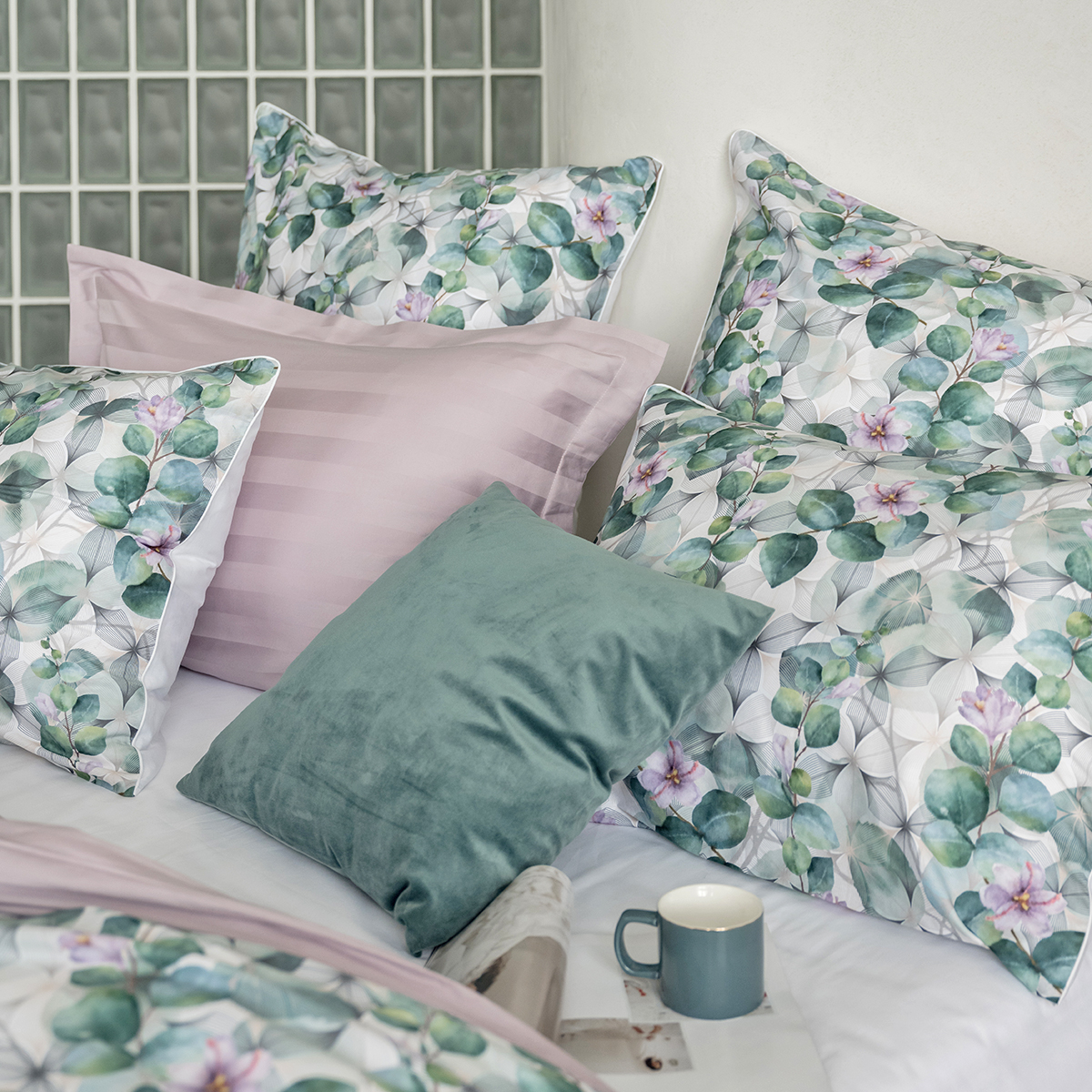 - Наволочки двухсторонние: лицевая сторона– принт, оборотная – однотонная. Декоративный кант по трем сторонам наволочки.