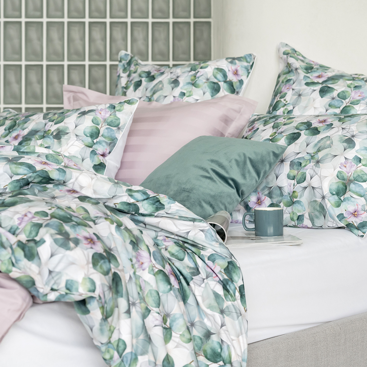Эта ткань не требует специального ухода – легко стирается и гладится. Пропускает воздух, поддерживает комфортную температуру тела, когда вы спите. Гипоаллергенно.