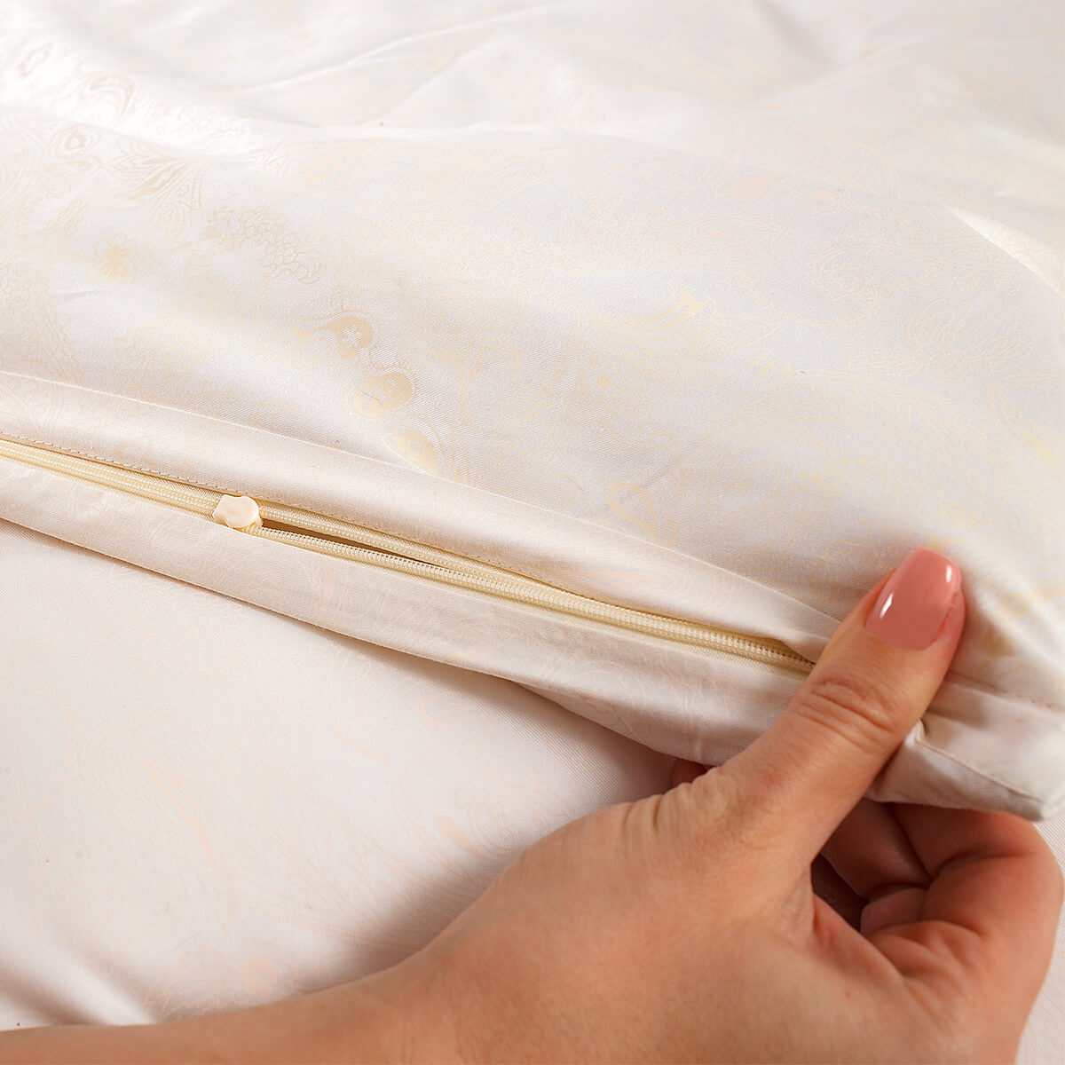 Пододеяльник. «Невидимая» молния во всю ширину по нижнему краю. Клапаны для рук в верхней части пододеяльника для быстрой и удобной смены постельного белья.