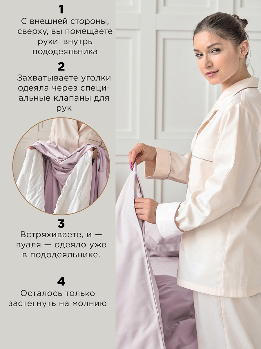 Превратите рутину в ритуал удовольствия. Клапаны для рук в верхней части пододеяльника — это магия, которую нужно испытать. Больше никакого стресса, только легкая улыбка, когда ваше одеяло послушно занимает свое место. Проверенная технология, которую оценили тысячи покупателей!  Каждая деталь продумана для вашего комфорта.