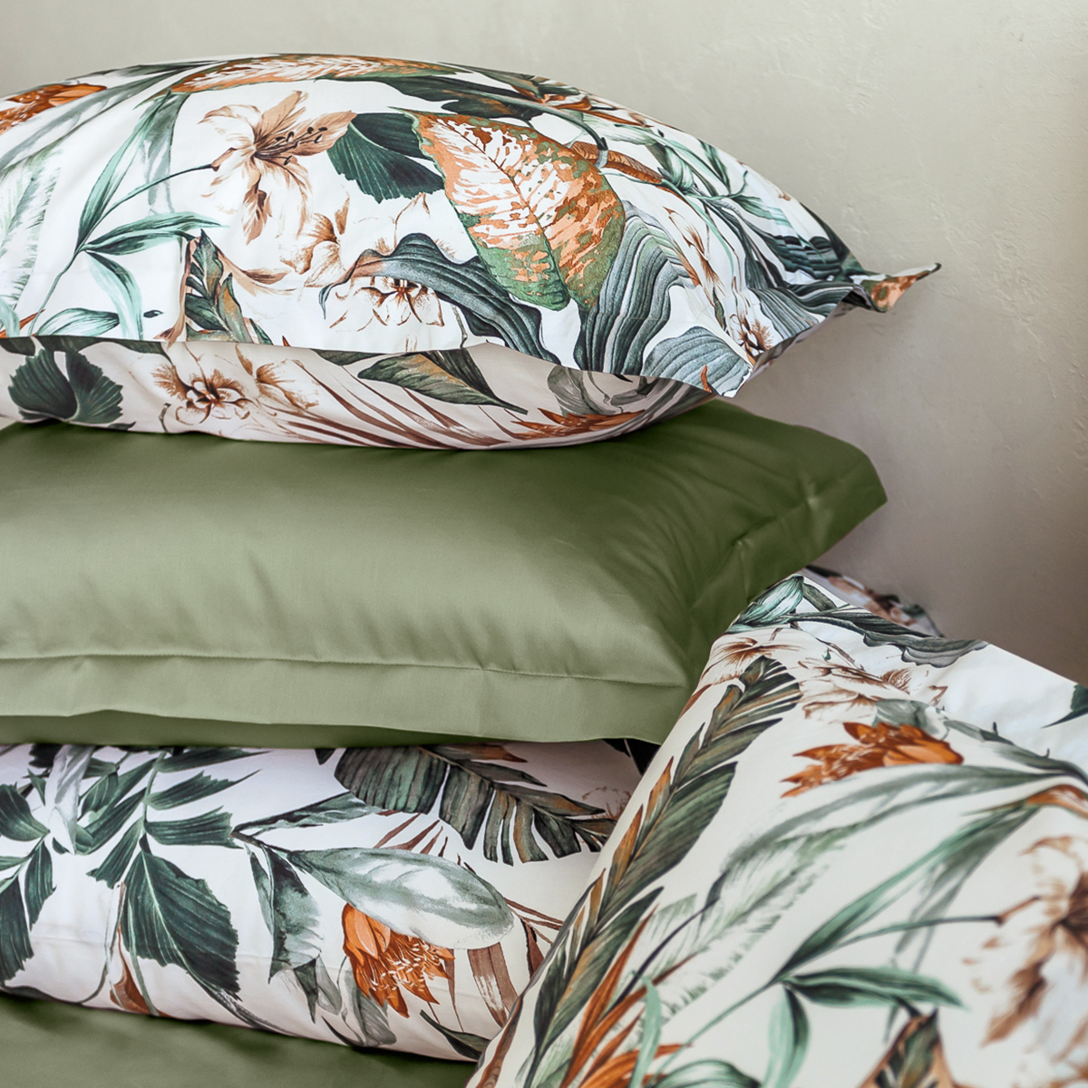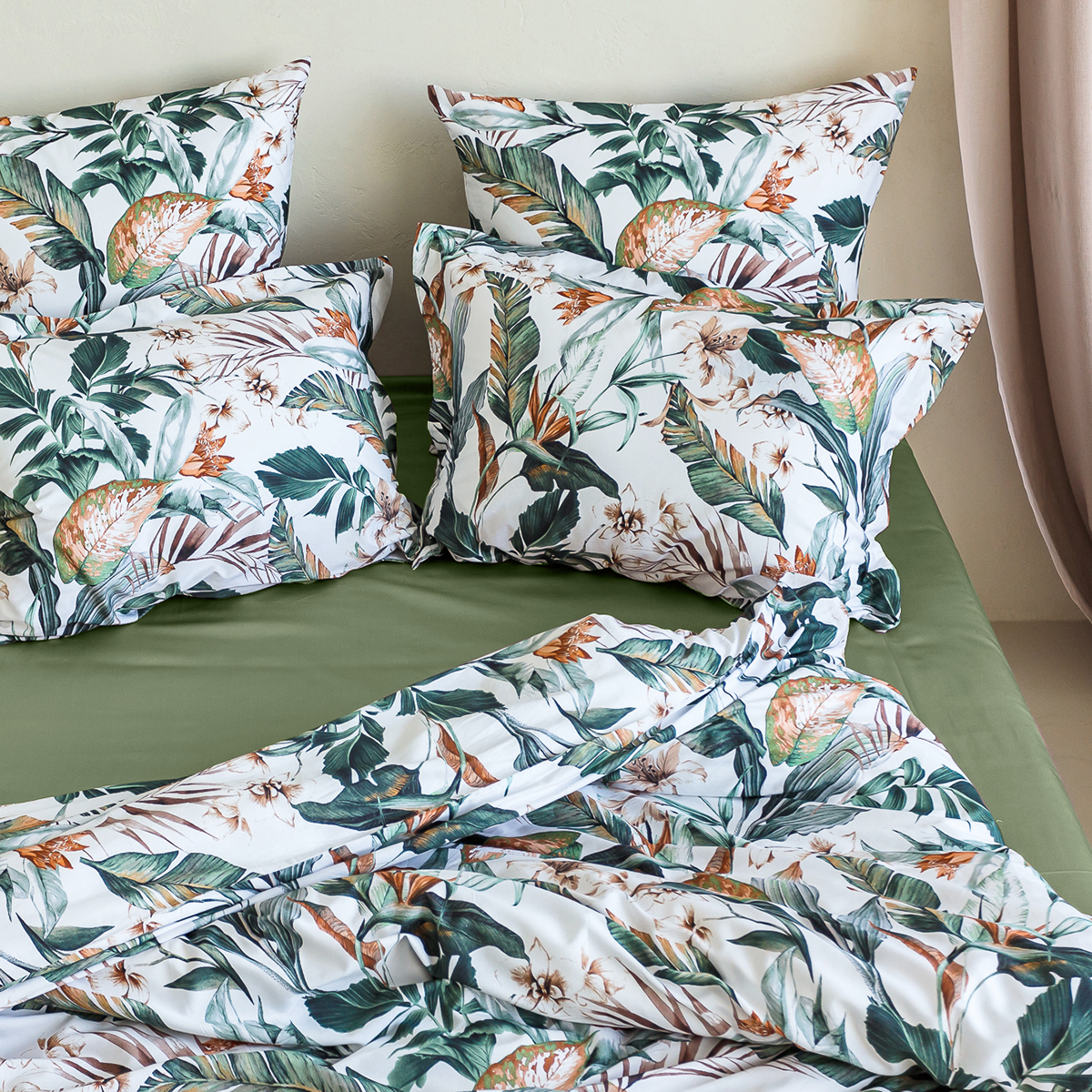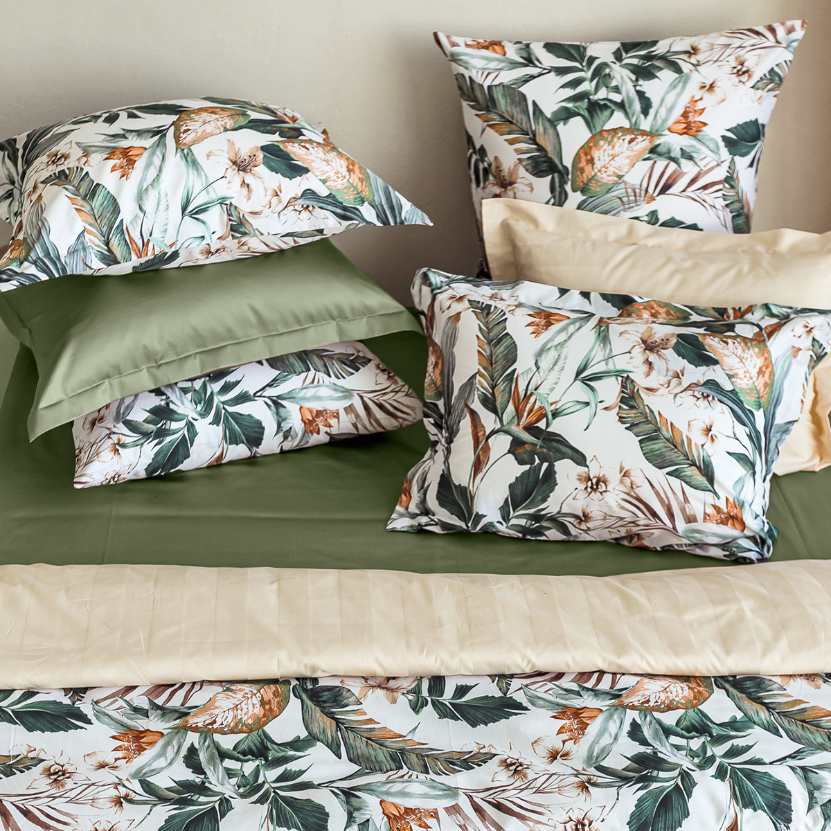 В ткани мако-сатин, из которой произведена коллекция, используется более тонкая 60-я нить. Плотность ткани 300 ТС. За счет специальной скрутки нити, ткань получается очень мягкая и приятная на ощупь.