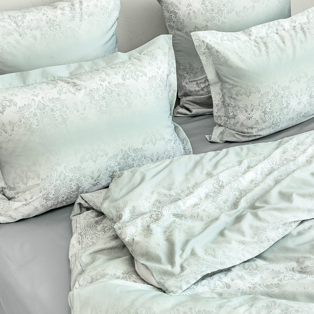 В ткани мако-сатин, из которой произведена коллекция, используется более тонкая 60-я нить. Плотность ткани 300 ТС. За счет специальной скрутки нити, ткань получается очень мягкая и приятная на ощупь.