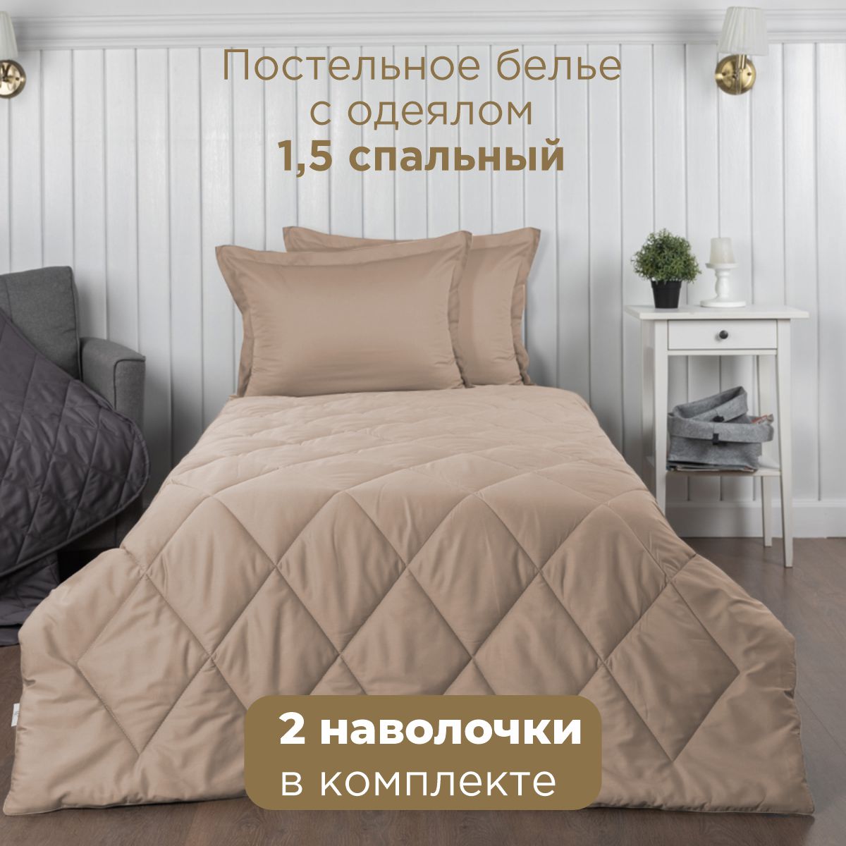 ПОСТЕЛЬНОЕ БЕЛЬЁ САТИН С ОДЕЯЛОМ 2 НАВОЛОЧКИ КАПУЧИНО