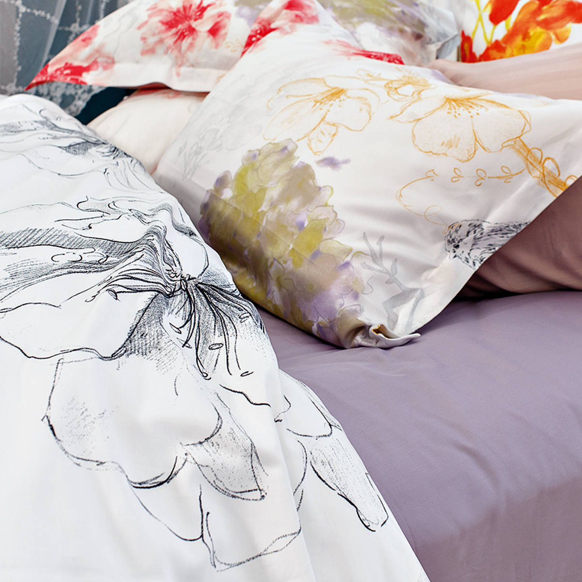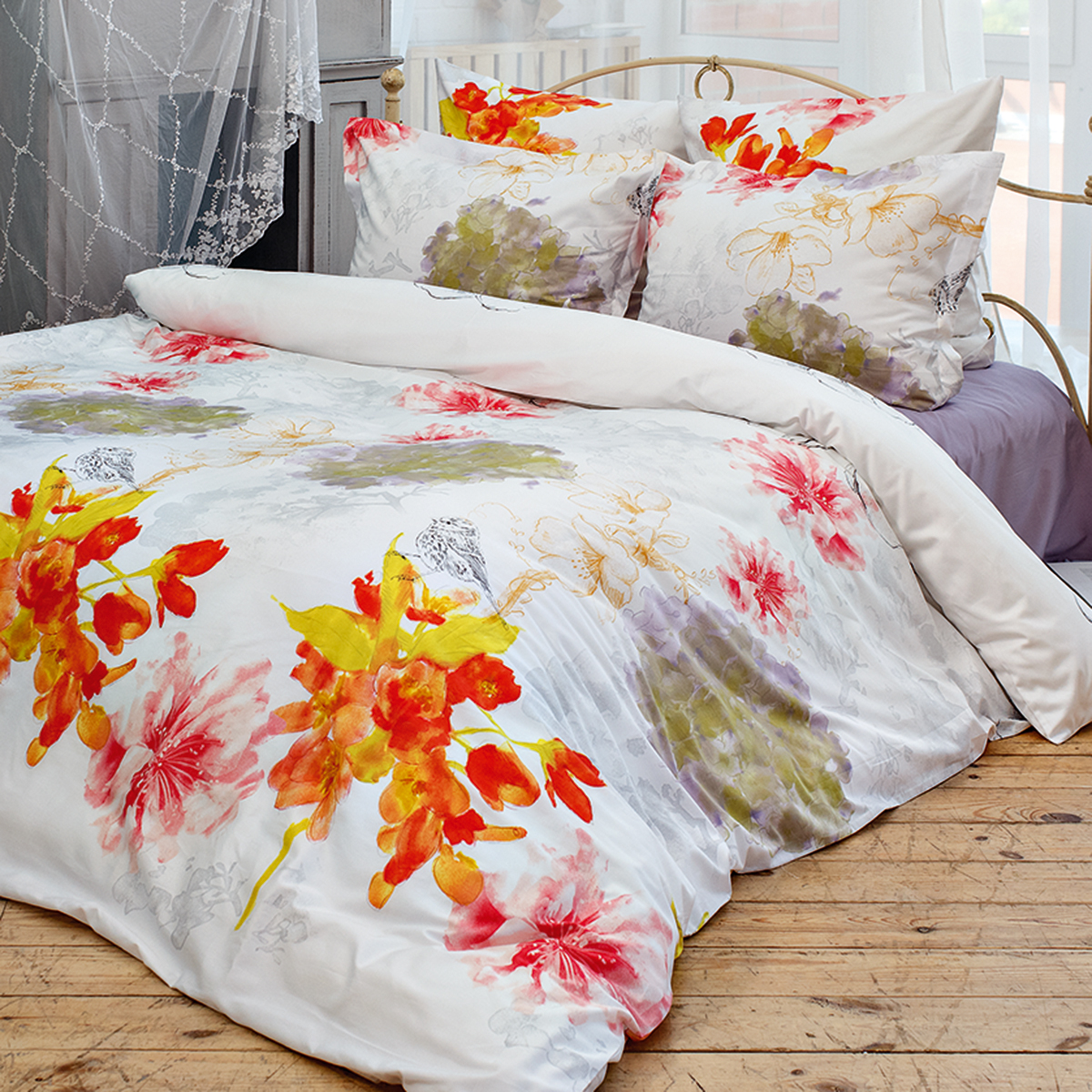 В ткани мако-сатин, из которой произведена коллекция, используется более тонкая 60-я нить. Плотность ткани 300 ТС. За счет специальной скрутки нити, ткань получается очень мягкая и приятная на ощупь.