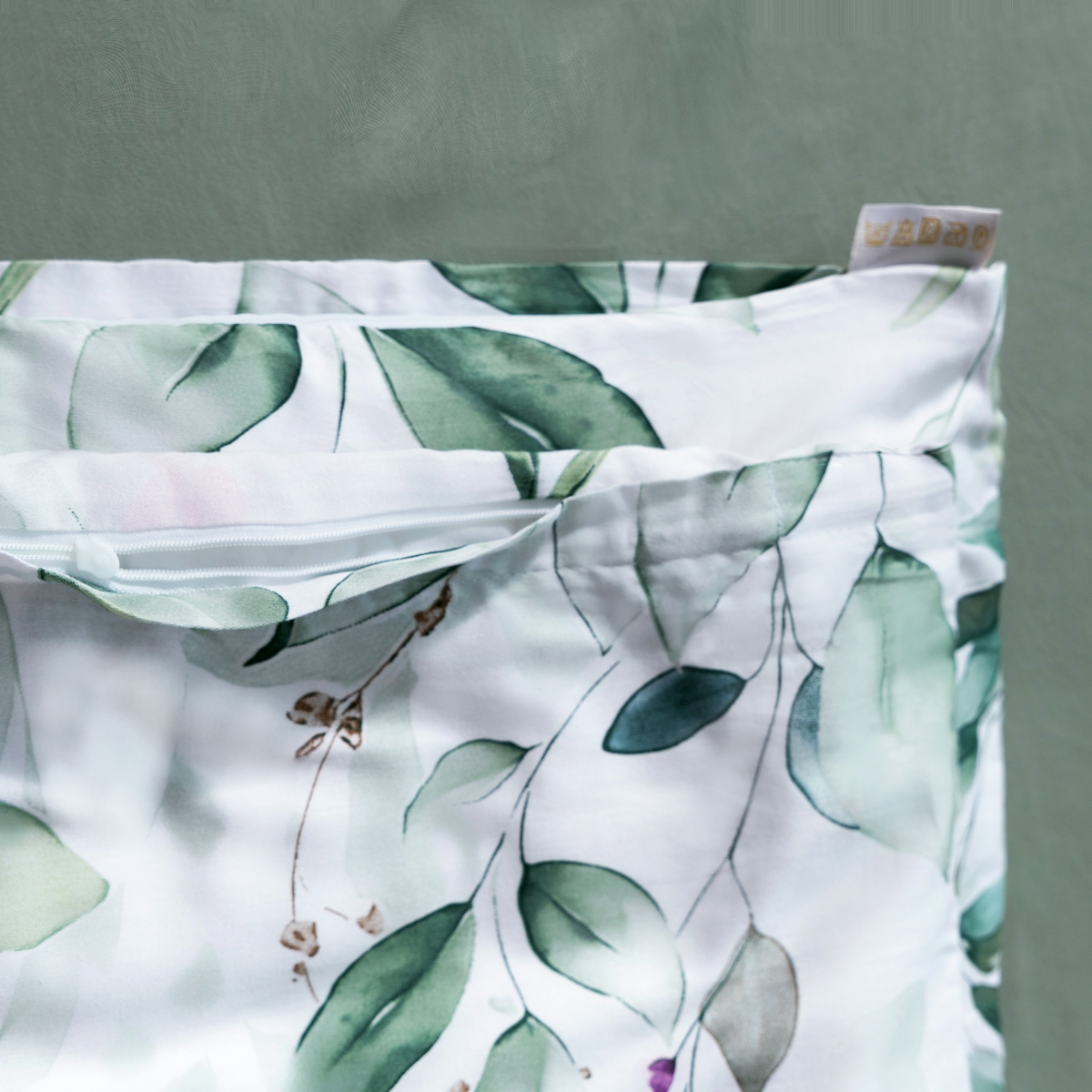 • «Невидимая» молния во всю ширину по нижнему краю пододеяльника. Для быстрой и удобной смены постельного белья в верхней части пододеяльника расположены клапаны для рук. Сменить пододеяльник можно за 30 секунд.