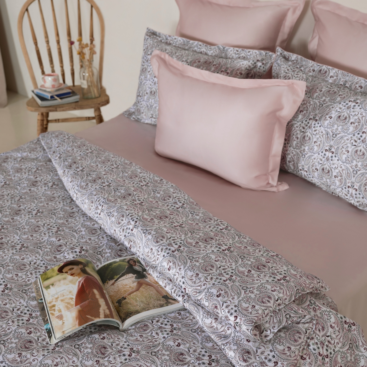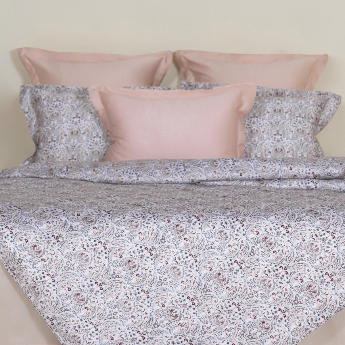 Элегантный дизайн, вдохновленный изысканной классикой, наполняет пространство утонченным шармом. Роскошный узор в благородной палитре создаёт гармоничную и стильную композицию. Мелкие детали орнамента придают комплекту особую выразительность, а нежный фон делает его универсальным для любого интерьера. Идеальный выбор для тех, кто ценит благородную эстетику и уютную атмосферу в спальне.