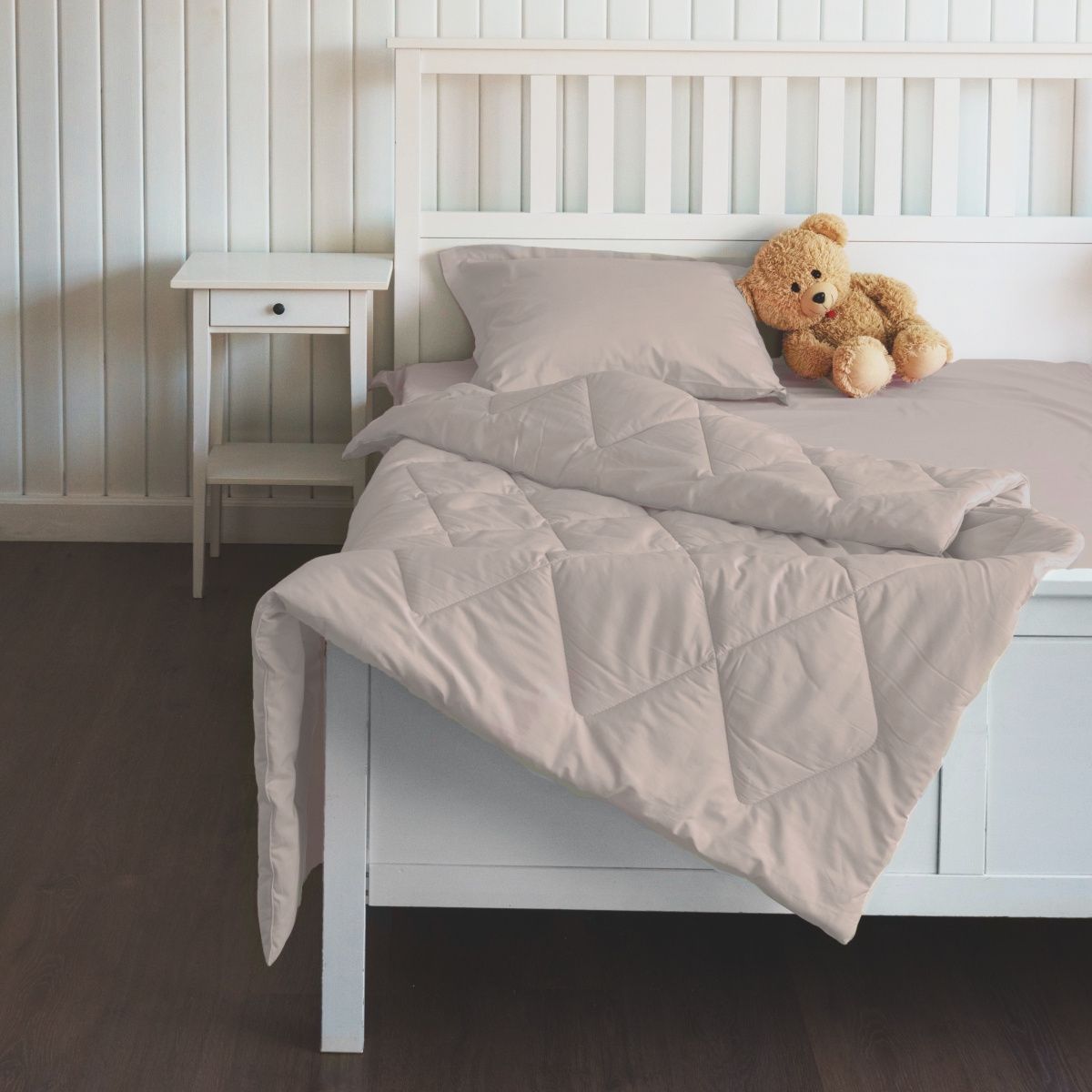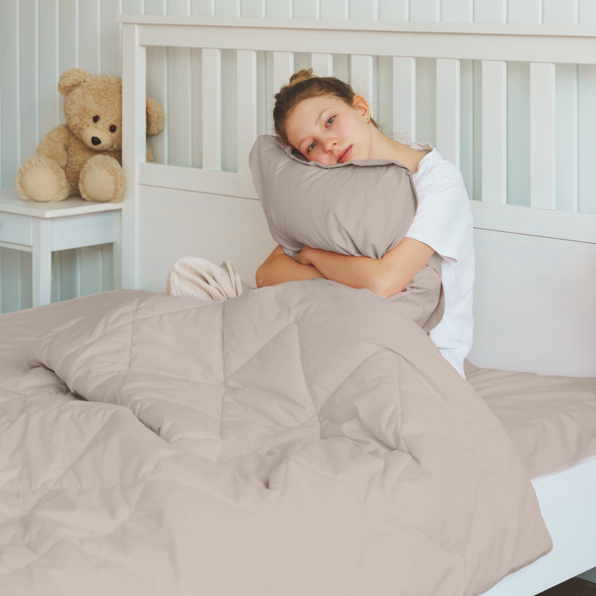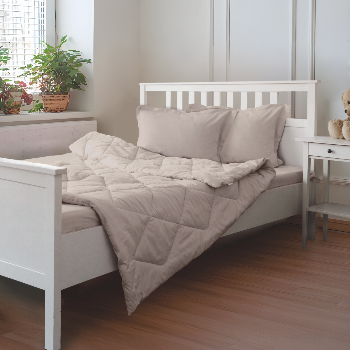 За постельным бельем с одеялом легко ухаживать, его можно стирать в стиральной машине, оно выдерживает до 500 стирок.