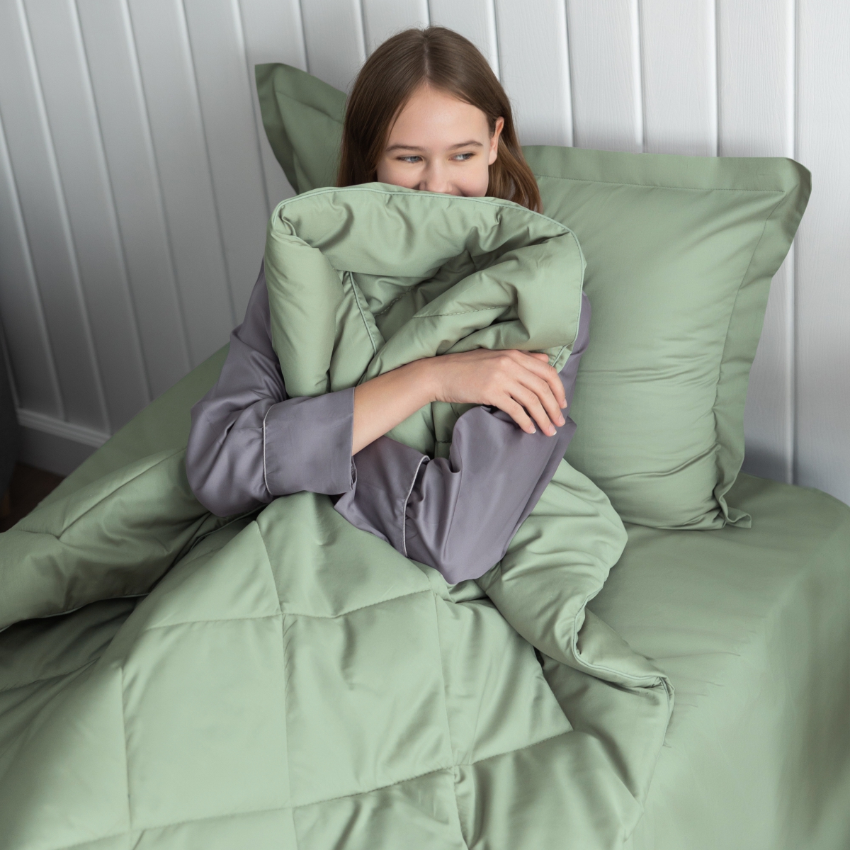 • Стеганое одеяло 140х205см. Одеяло всесезонное, плотность 200гр, что позволяет пользоваться им круглый год. Наполнитель у одеяла: гипоаллергенное 3D микроволокно, не сбивается после стирок.