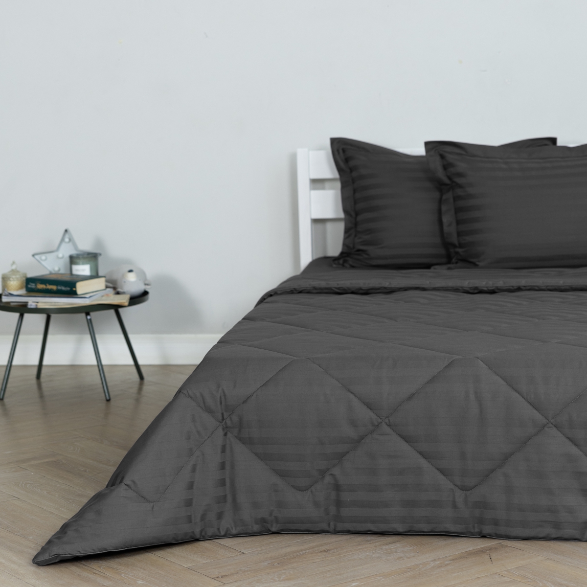 Постельное бельё Cатин | ПОСТЕЛЬНОЕ БЕЛЬЁ СТРАЙП-САТИН С ОДЕЯЛОМ 2 НАВОЛОЧКИ ТЕМНО-СЕРЫЙ