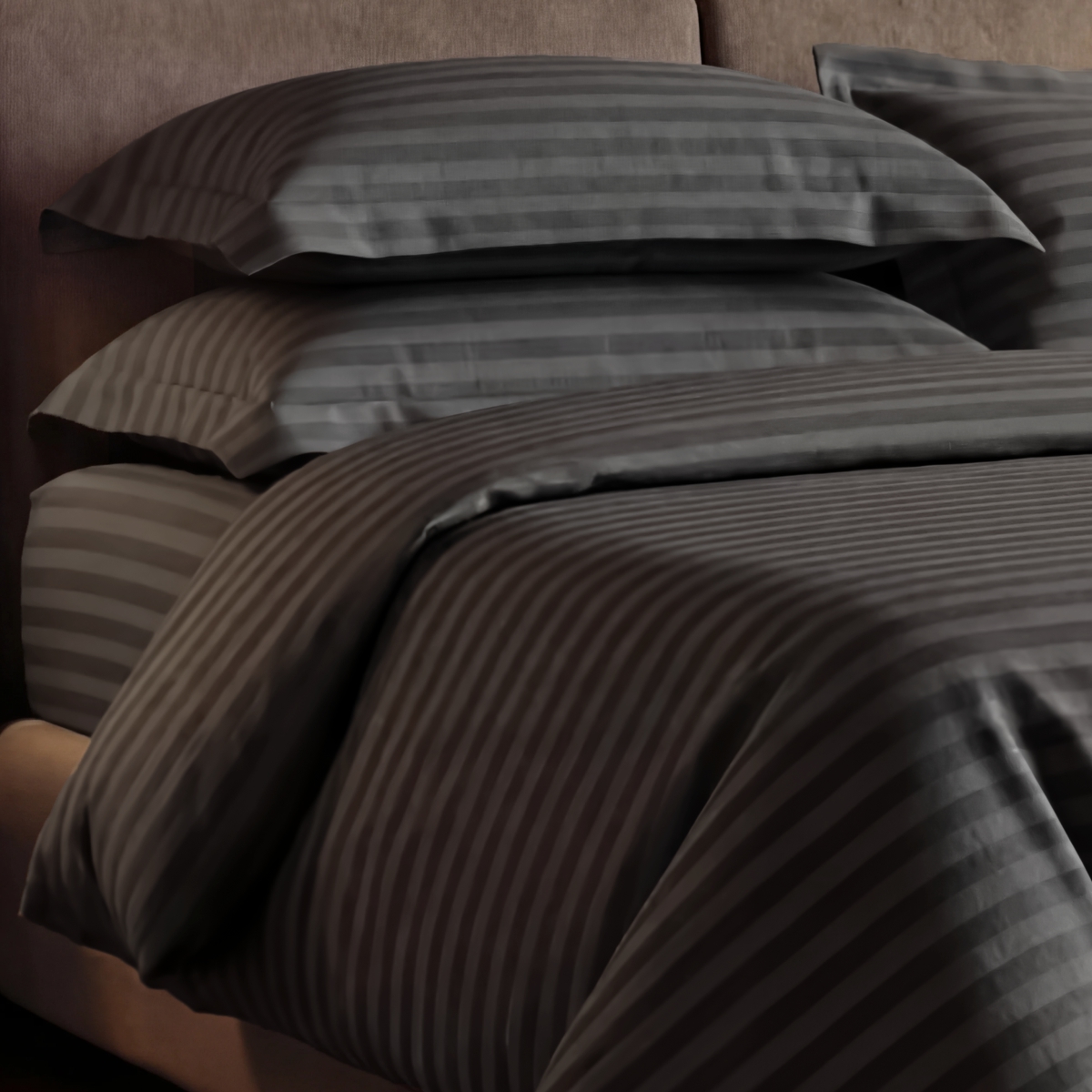 ПОСТЕЛЬНОЕ БЕЛЬЁ СТРАЙП-САТИН ТЕМНО-СЕРЫЙ