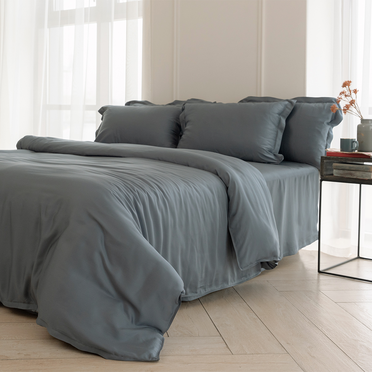 - Tencel впитывает влагу на 50% лучше хлопка и шерсти – поддерживает идеальный уровень влажности и температуры во сне;