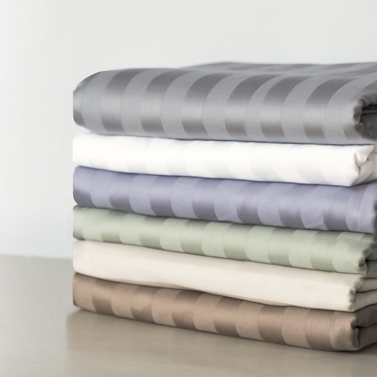 Однотонный стильный пододеяльник произведен из ткани страйп-сатин – 100% хлопок с жаккардовым рисунком в виде полос 3х3