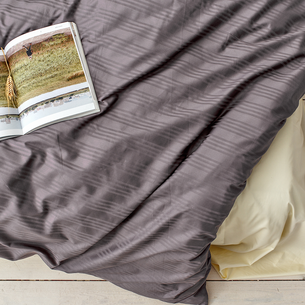Однотонный стильный пододеяльник произведен из ткани страйп-сатин – 100% хлопок с жаккардовым рисунком в виде полос 4*1.