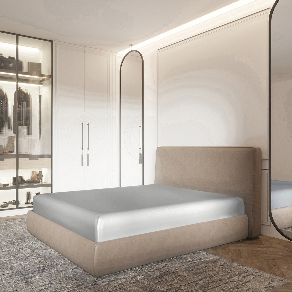 ПРОСТЫНЯ НА РЕЗИНКЕ МАКО-САТИН СЕРЕБРИСТЫЙ