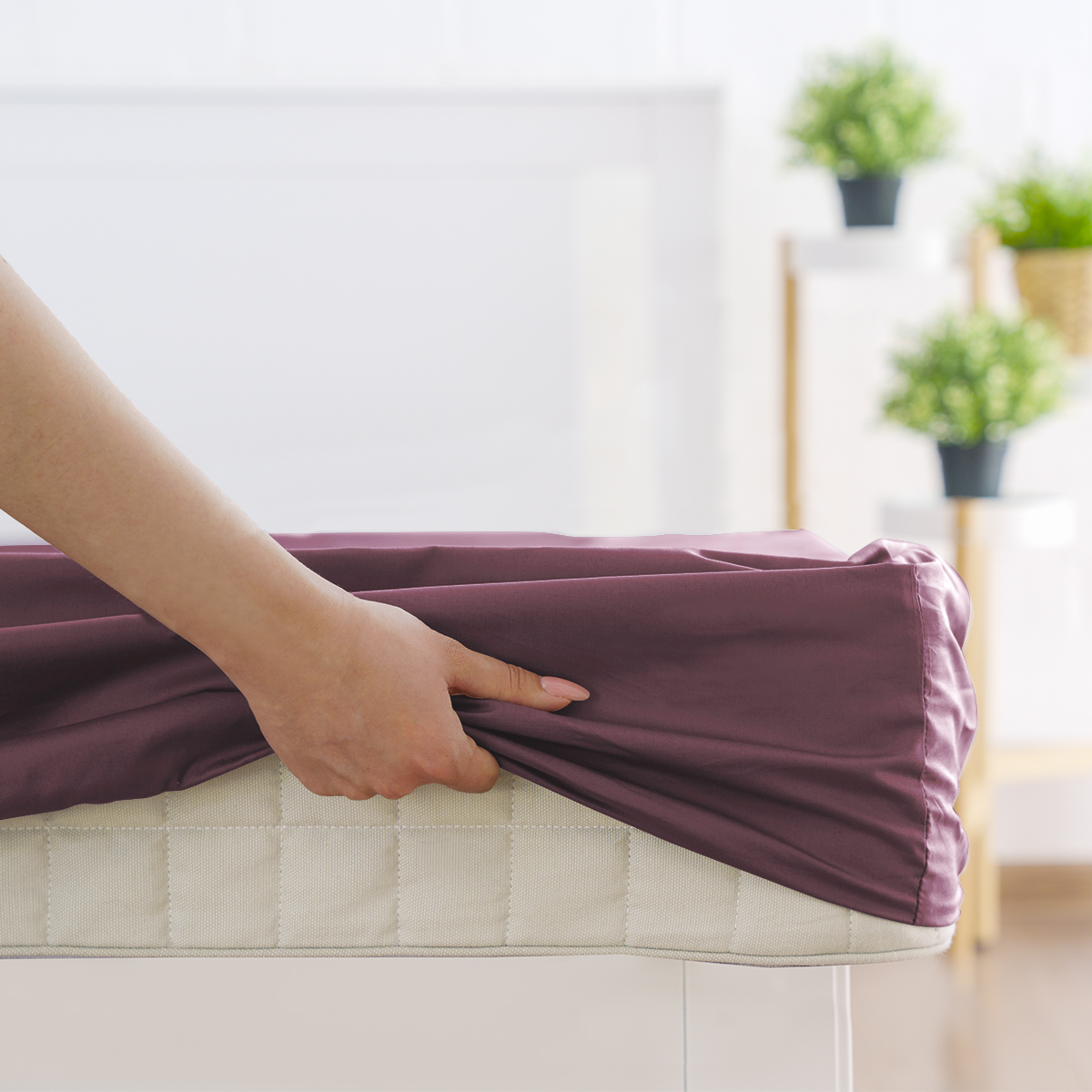 Однотонная стильная простыня на резинке (натяжная) произведена из ткани сатин – 100% хлопок. Благодаря сатиновому плетению двойной крученой нити хлопка, сатин – очень приятная, мягкая, но в то же время прочная ткань. Пропускает воздух, поддерживает комфортную температуру тела, когда вы спите.