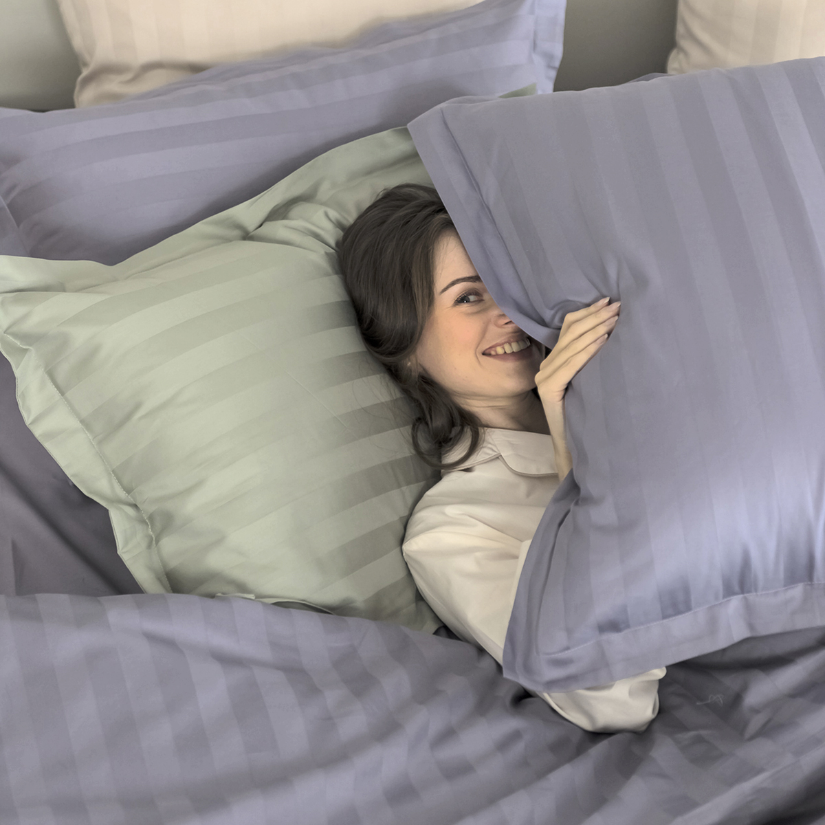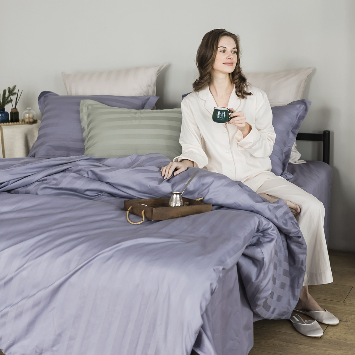 Однотонная стильная простыня произведена из ткани сатин – 100% хлопок.  Благодаря сатиновому плетению двойной крученой нити хлопка, сатин – очень приятная, мягкая, но в то же время прочная ткань. Пропускает воздух, поддерживает комфортную температуру тела, когда вы спите.