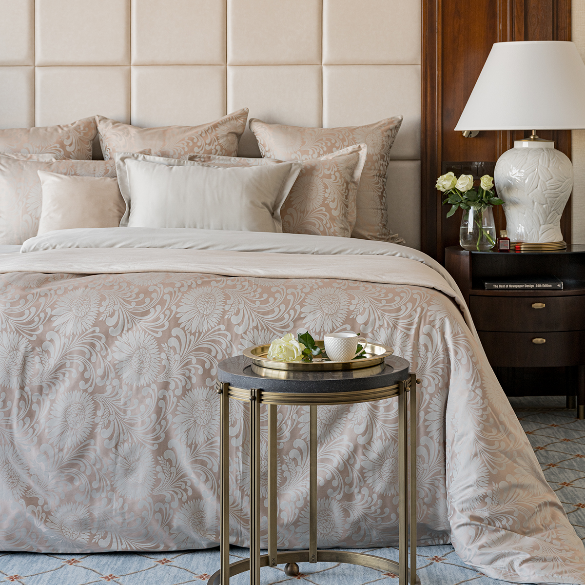 Внешне жаккардовое постельное белье выглядит очень дорого и изысканно. Благодаря тому, что нити в процессе производства перекручиваются, жаккардовая ткань очень плотная, прочная и устойчивая к деформированию, а рисунок и цвет не тускнеют в процессе эксплуатации.