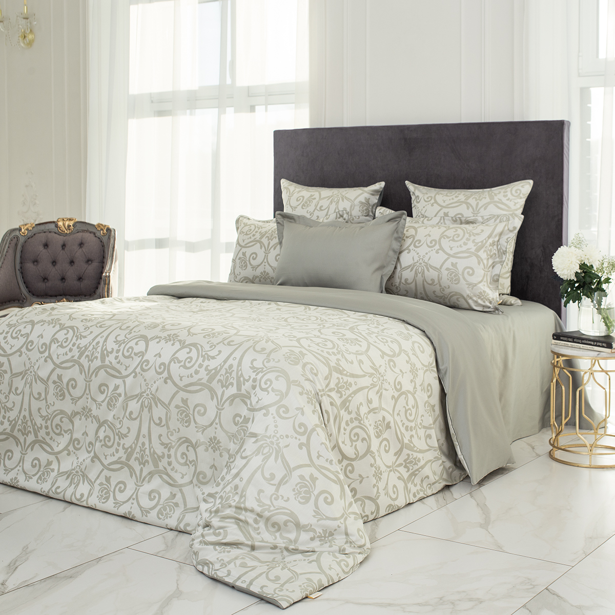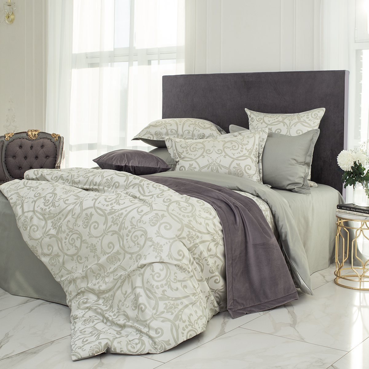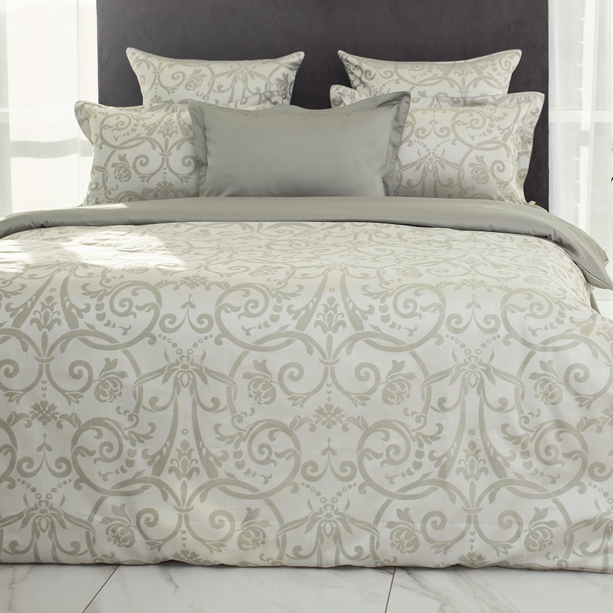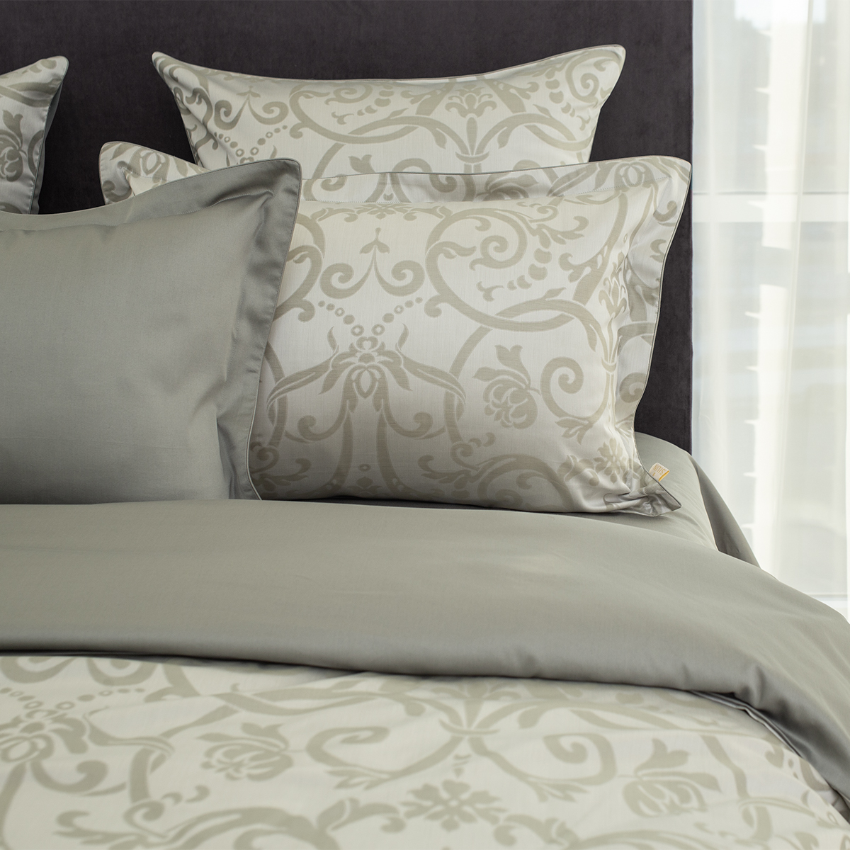 • Лицевая сторона наволочек и пододеяльника выполнена из жаккардовой ткани, оборотная из премиального длинноволокнистого хлопка сорта Пима