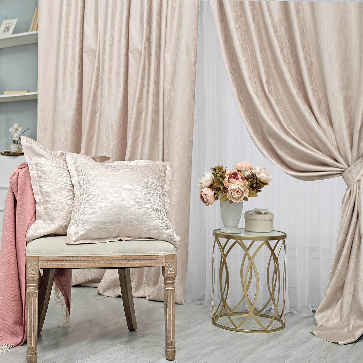 Шторы представлены в 2 цветах: бежево-розовом и жемчужно-розовом.